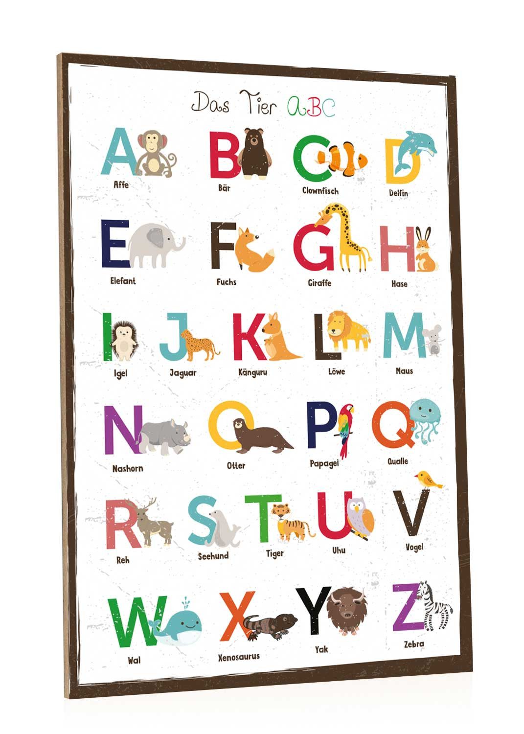Eigenschaften Holzschild mit Spruch Kunstdruck Typografie Holzschild Das Tier ABC