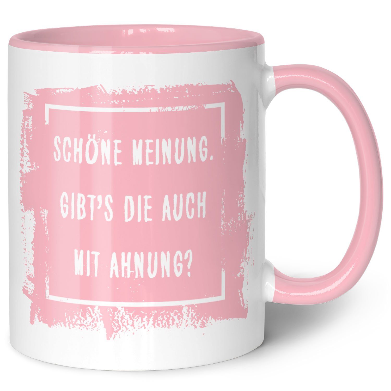 GRAVURZEILE Tasse mit Spruch - "Schöne Meinung", Keramik, Farbe: Rosa