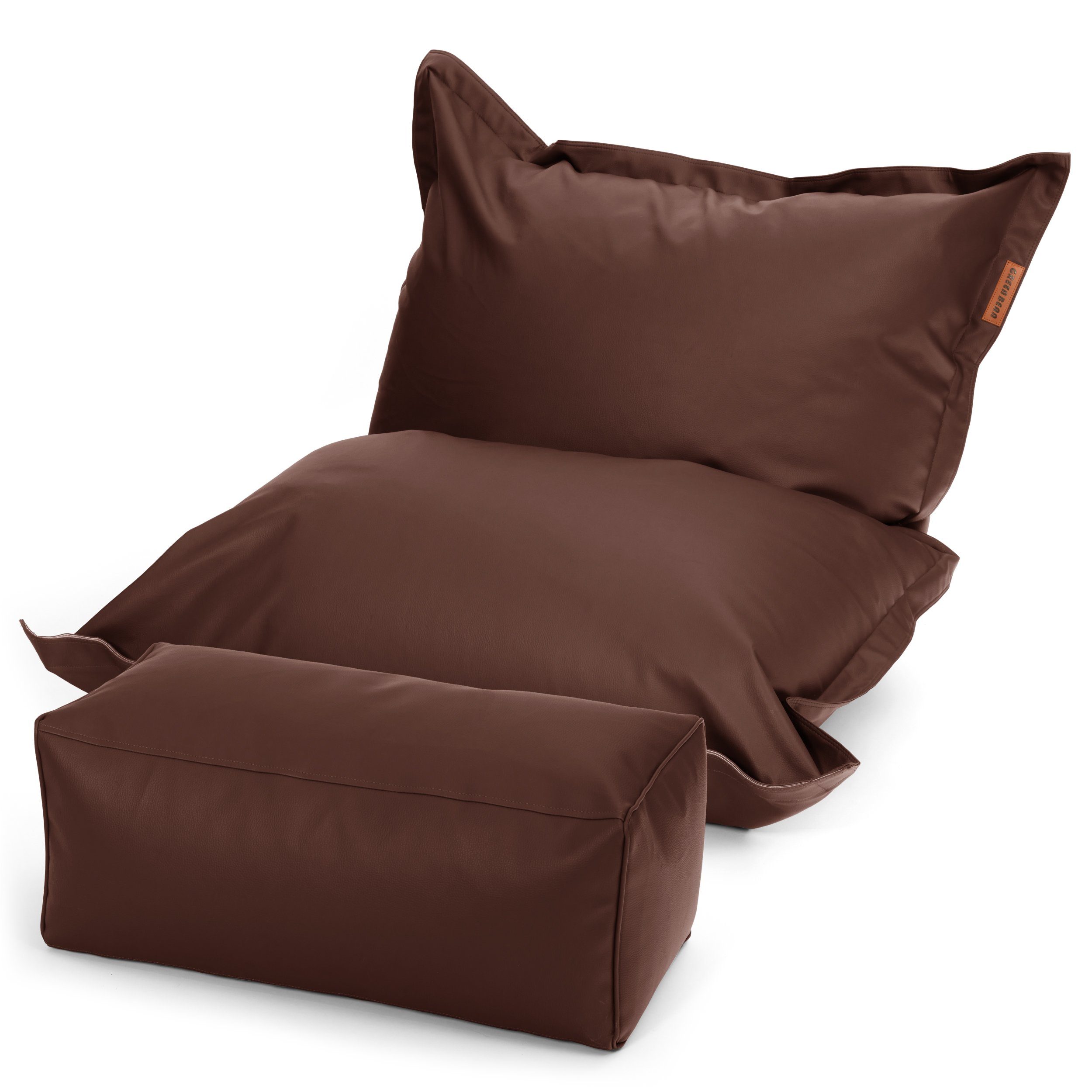 Gemütliches XXL Bodenkissen mit Lederimitat-Oberfläche. Perfekt als Liege, TV- oder Lesesessel oder Gaming Sitzsack im Innenbereich oder auf Balkon und Terrasse.