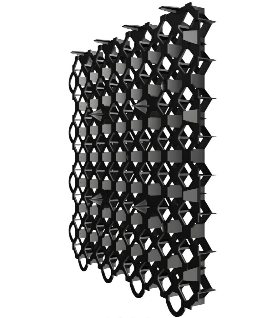 Die Installation ist schnell und einfach. Die einzelnen Paneele werden durch integrierte Haken an den Rändern der einzelnen Gitter verbunden, so dass ein Dehnungsraum entsteht. Die Konstruktion ist stabil und dennoch vollständig durchbrochen. Die Wurzeln des Grases können perfekt in das Gitter hineinwachsen, und zwar in jede Richtung, so dass eine stabile, BIOLOGISCH GEEIGNETE Oberfläche entsteht.