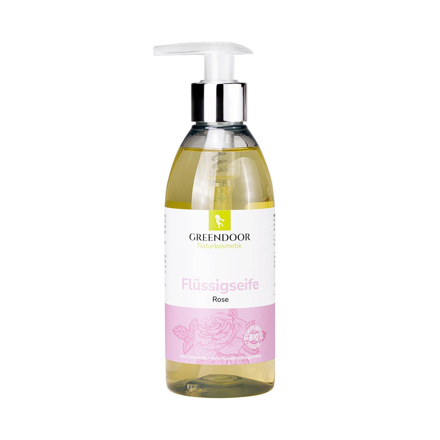 Echte flüssige Handseife aus verseiftem Bio Kokosöl und verseiftem Bio Olivenöl. Mit zartem Rosenduft, frisch abgerundet mit Zitronengras. Glasklar und hell natürlich honiggelb kommt GREENDOOR echte Flüssigseife ohne Farbstoffe aus.