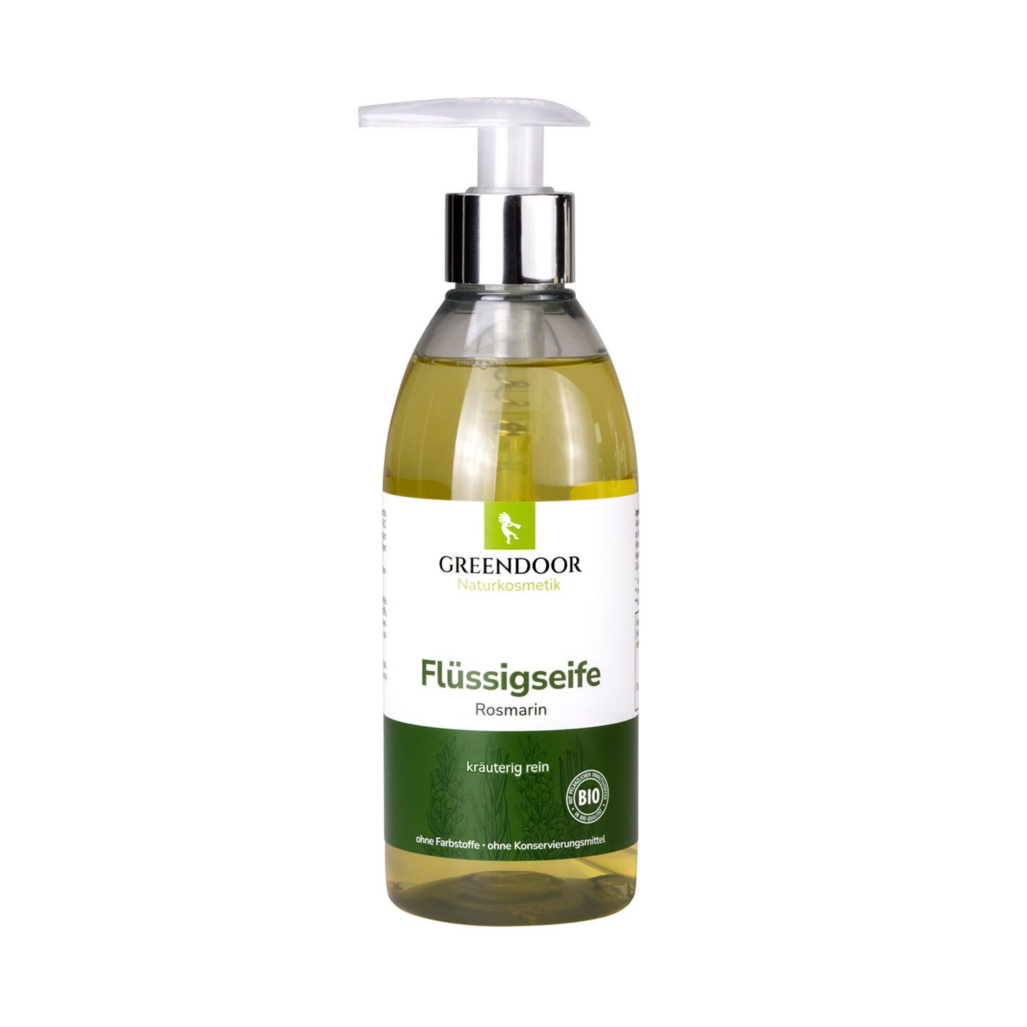 Echte flüssige Handseife aus verseiftem Bio Kokosöl und verseiftem Bio Olivenöl mit dem Duft von frischem Rosmarin, Muskatellersalbei und zarten Zitrusaromen. Unser absoluter Kräuter Favorit. Glasklar und hell natürlich honiggelb kommen GREENDOOR Flüssigseifen ohne Farbstoffe aus.
