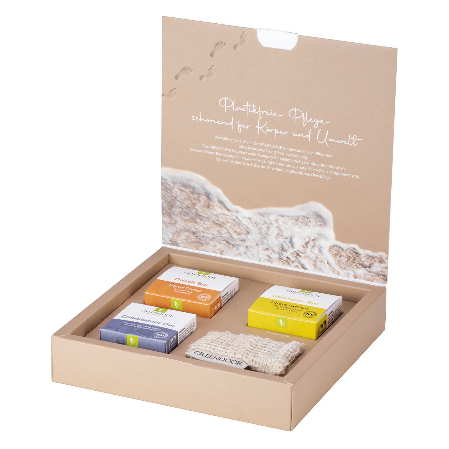 GREENDOOR Naturkosmetik Solid Bar Pflegeserie ohne Mikroplasik und Plastikverpackung.