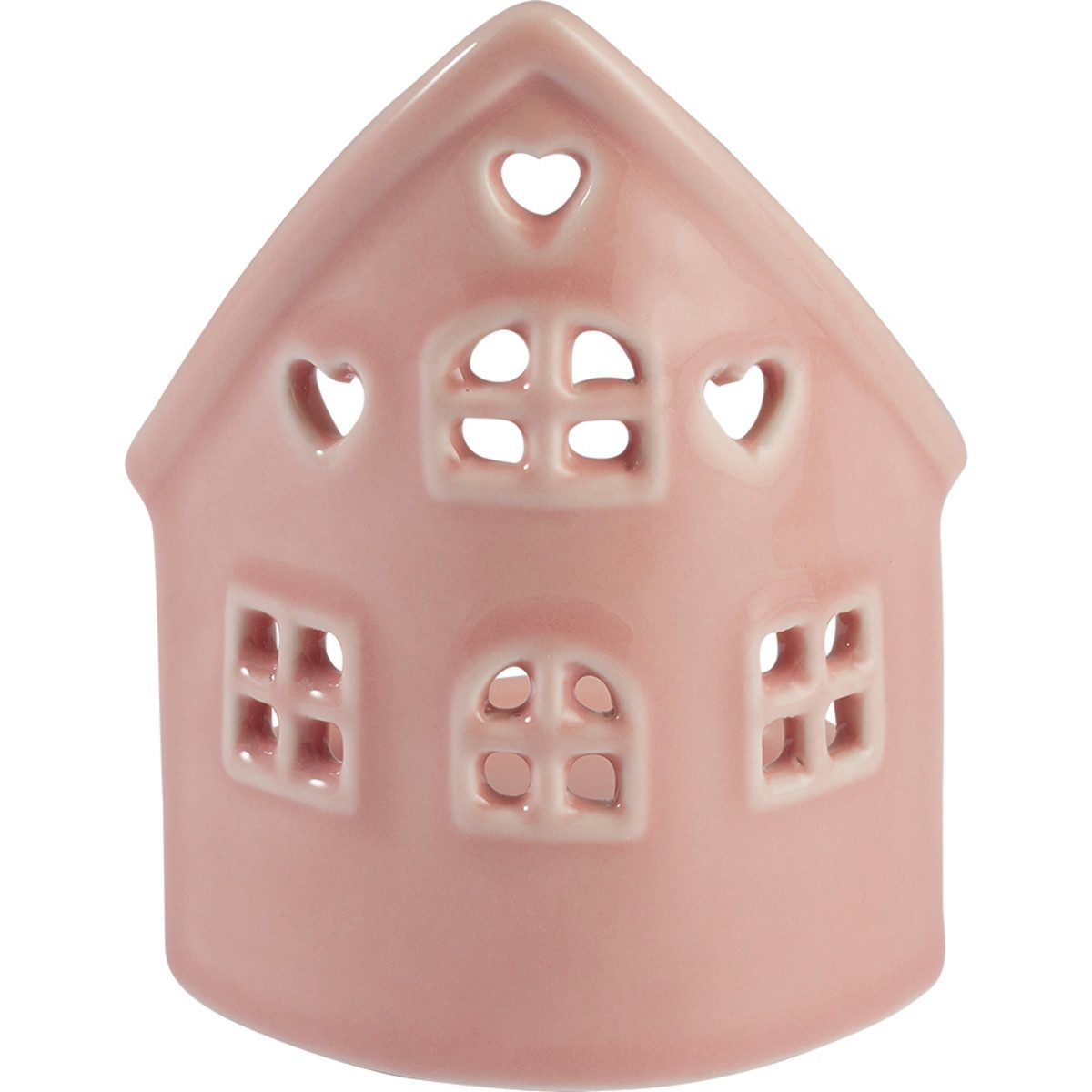 Der zarte Greengate Kerzenständer \Weihnachten Haus\" in blassrosa Farbe, Maße 8x11 cm, verleiht Ihrem Raum eine sanfte Weihnachtsnote. Handgefertigt im charmanten Hausdesign, bietet er einen einzigartigen Ort für Kerzen und dezente Dekorationen, der Wärme und Festlichkeit ausstrahlt.