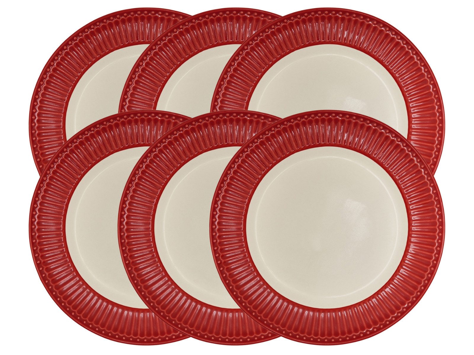Der Greengate Alice Speiseteller in kräftigem Rot bringt lebendige Farbe und skandinavische Klarheit auf den gedeckten Tisch. Mit einem Durchmesser von 26,5 cm eignet er sich ideal für Hauptgerichte – ob im Alltag, beim Familienessen oder zu festlichen Anlässen.