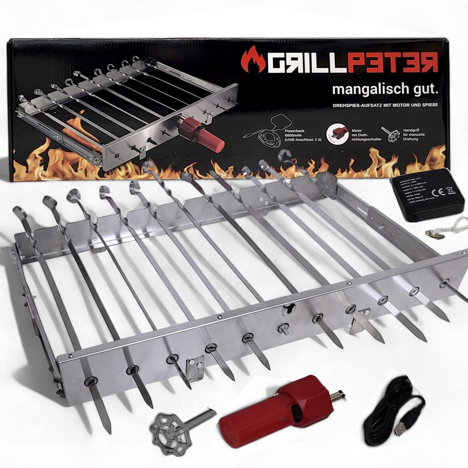 Mangal Schaschlik Spießdreher Edelstahl Sesam für 11 Spieße Motor Powerbank USB Spieße