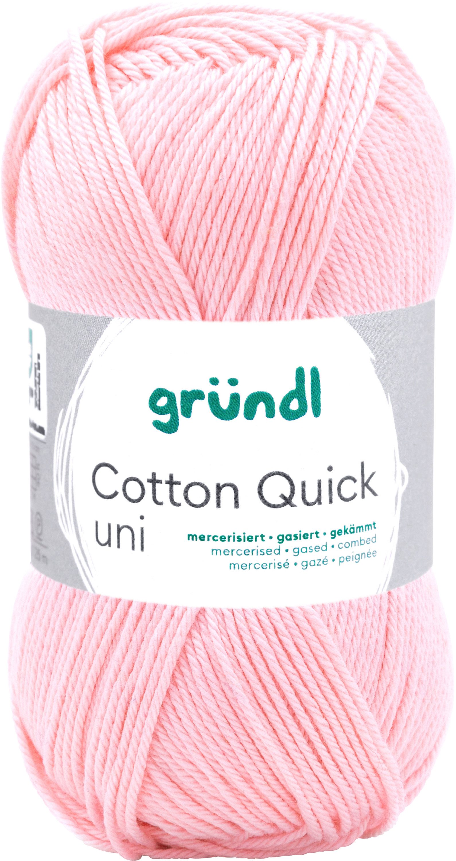 Gründl Wolle Cotton Quick ist ein sehr strapazierfähiges und langlebiges Garn. Es fühlt sich sehr weich auf der Haut an und wirkt gleichzeitig kühlend. Da die Wolle aus 100% Baumwolle besteht, kratzt sie nicht auf der Haut und ist zugleich in der Lage Feuchtigkeit der Haut.