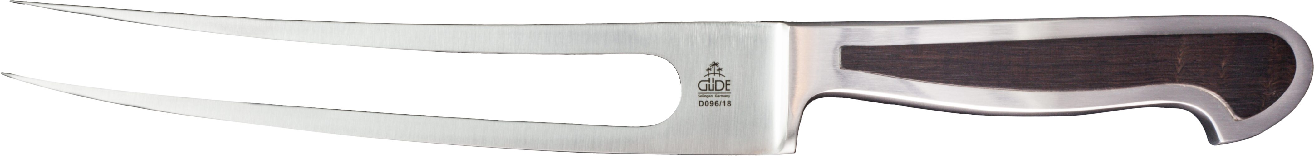 Ein gutes Messer muss scharf sein, scharf bleiben, gut in der Hand liegen und ausbalanciert sein, so dass ermüdungsfreies und jederzeit sicheres Arbeiten garantiert ist. Die Härte des GÜDE Klingenstahls mit ca. 57-58 HRc (Rockwell) und der GÜDE Watenwinkel von ca. 33 Grad stellen eine optimale Schärfe und Schneidhaltigkeit der Serie Delta sicher. Die Form des Griffes aus Ganzmetall mit Intarsien aus Räuchereiche und der für GÜDE typische Doppelkropf garantieren perfekte Handhabung und Ausbalancierung der Messer der Serie Delta.