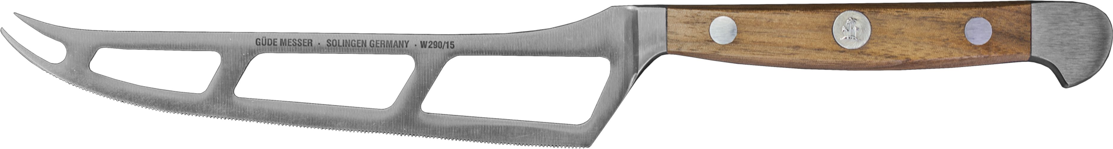 Ein gutes Messer sollte nicht nur scharf sein, es sollte auch möglichst lange scharf bleiben. Ein gutes Messer soll darüber hinaus gut in der Hand liegen und ausbalanciert sein, so dass ermüdungsfreies und jederzeit sicheres Arbeiten garantiert ist. Schärfe und Schneidhaltigkeit der Serie Alpha Walnuss werden sowohl durch die optimale Härte des GÜDE Klingenstahls mit ca. 57-58 HRc (Rockwell) wie auch durch den GÜDE Watenwinkel von ca. 33 Grad sichergestellt. Die Form des Griffes, der Voll-Erl und der für GÜDE typische Doppelkropf machen aus den Messern der Serie Alpha Walnuss ein zuverlässiges Werkzeug, das perfekte Handhabung und Ausbalancierung garantiert.