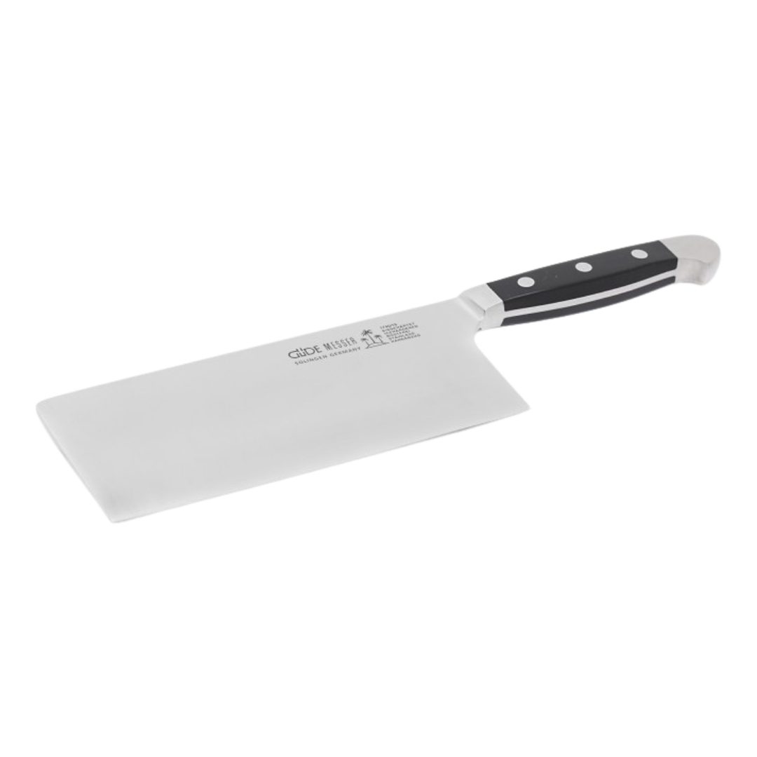 Entdecke das Güde Alpha Kochmesser "Chinaform" mit einer 18 cm langen Klinge – dein neuer Allrounder in der Küche. Dieses Meisterwerk von Güde besticht durch seine besonders scharfe, breite Klinge aus handgeschmiedetem Chrom-Vanadium-Molybdän Messerstahl. Ideal zum feinen Zerkleinern von Gemüse, Salaten und größeren Zutaten, schneidest du mühelos und präzise. Die robuste Klinge eignet sich perfekt, um Speisen direkt in der Pfanne zu schieben und zu wenden, was dir mehr Flexibilität beim Kochen bietet.