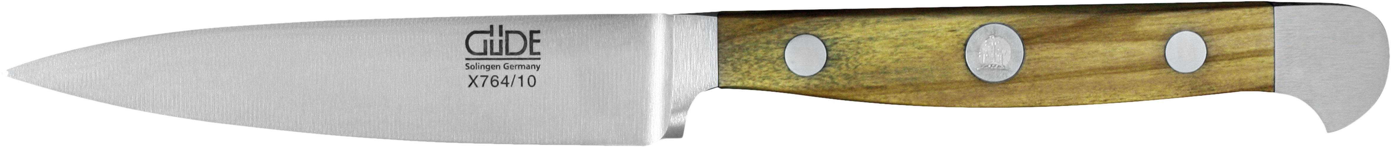 Hochwertige Messer müssen nicht nur scharf sein, sie müssen scharf bleiben, sie sollen gut in der Hand liegen und ausbalanciert sein, damit ermüdungsfreies und jederzeit sicheres Arbeiten garantiert ist. Die optimale Schärfe und Schneidhaltigkeit der Serie Alpha Olive wird sowohl durch die Härte des GÜDE Klingenstahls mit ca. 57-58 HRc (Rockwell) als auch durch den GÜDE Watenwinkel von ca. 33 Grad sichergestellt. Die Griff-Form, der durchgehende Erl und der für GÜDE unverkennbare Doppelkropf machen aus den Messern der Serie Alpha Olive ein Werkzeug, das perfekte Handhabung und Ausbalancierung garantiert.