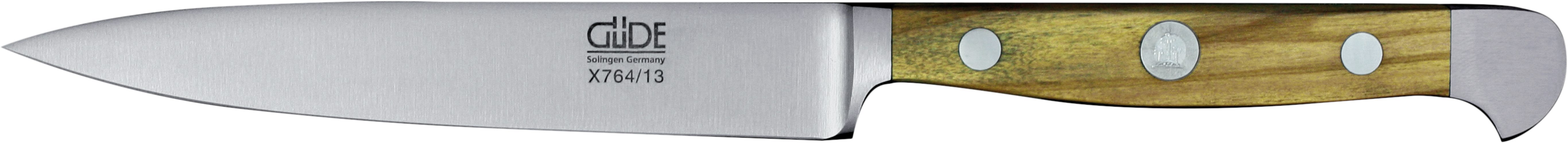 Hochwertige Messer müssen nicht nur scharf sein, sie müssen scharf bleiben, sie sollen gut in der Hand liegen und ausbalanciert sein, damit ermüdungsfreies und jederzeit sicheres Arbeiten garantiert ist. Die optimale Schärfe und Schneidhaltigkeit der Serie Alpha Olive wird sowohl durch die Härte des GÜDE Klingenstahls mit ca. 57-58 HRc (Rockwell) als auch durch den GÜDE Watenwinkel von ca. 33 Grad sichergestellt. Die Griff-Form, der durchgehende Erl und der für GÜDE unverkennbare Doppelkropf machen aus den Messern der Serie Alpha Olive ein Werkzeug, das perfekte Handhabung und Ausbalancierung garantiert.