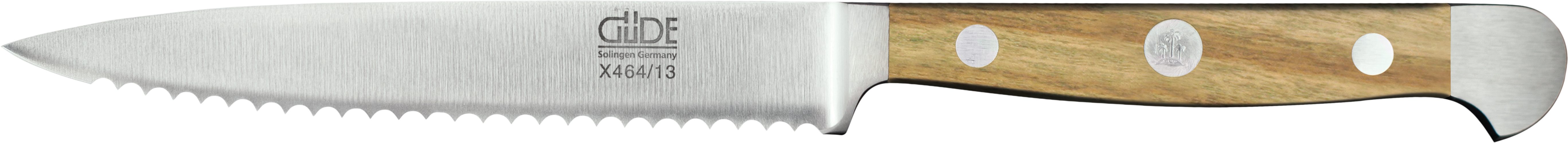 Hochwertige Messer müssen nicht nur scharf sein, sie müssen scharf bleiben, sie sollen gut in der Hand liegen und ausbalanciert sein, damit ermüdungsfreies und jederzeit sicheres Arbeiten garantiert ist. Die optimale Schärfe und Schneidhaltigkeit der Serie Alpha Olive wird sowohl durch die Härte des GÜDE Klingenstahls mit ca. 57-58 HRc (Rockwell) als auch durch den GÜDE Watenwinkel von ca. 33 Grad sichergestellt. Die Griff-Form, der durchgehende Erl und der für GÜDE unverkennbare Doppelkropf machen aus den Messern der Serie Alpha Olive ein Werkzeug, das perfekte Handhabung und Ausbalancierung garantiert.