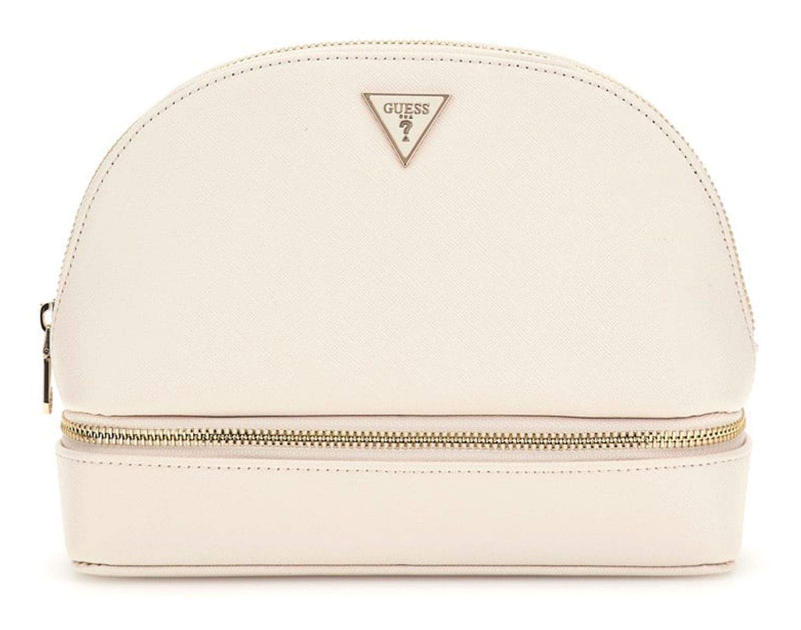 Mit dieser GUESS Utensilientasche haben Sie einen praktischen Begleiter gefunden, in dem Ihre wichtigsten Kosmetikutensilien geordnet unterkommen. Der schlichte Charme der Tasche und die Oberfläche sind bestens aufeinander abgestimmt! Egal ob im eigenen Bad oder auf Reisen, Sie möchten diese Tasche nicht mehr missen. Mit dem Zipper lässt sich die GUESS Dome Cosmetic Pouch schnell öffnen und Sie haben stets alles griffbereit. Im Zipperfach auf der Vorderseite befindet sich ein zusätzlicher Spiegel. Überzeugen Sie sich selbst und greifen Sie zu!