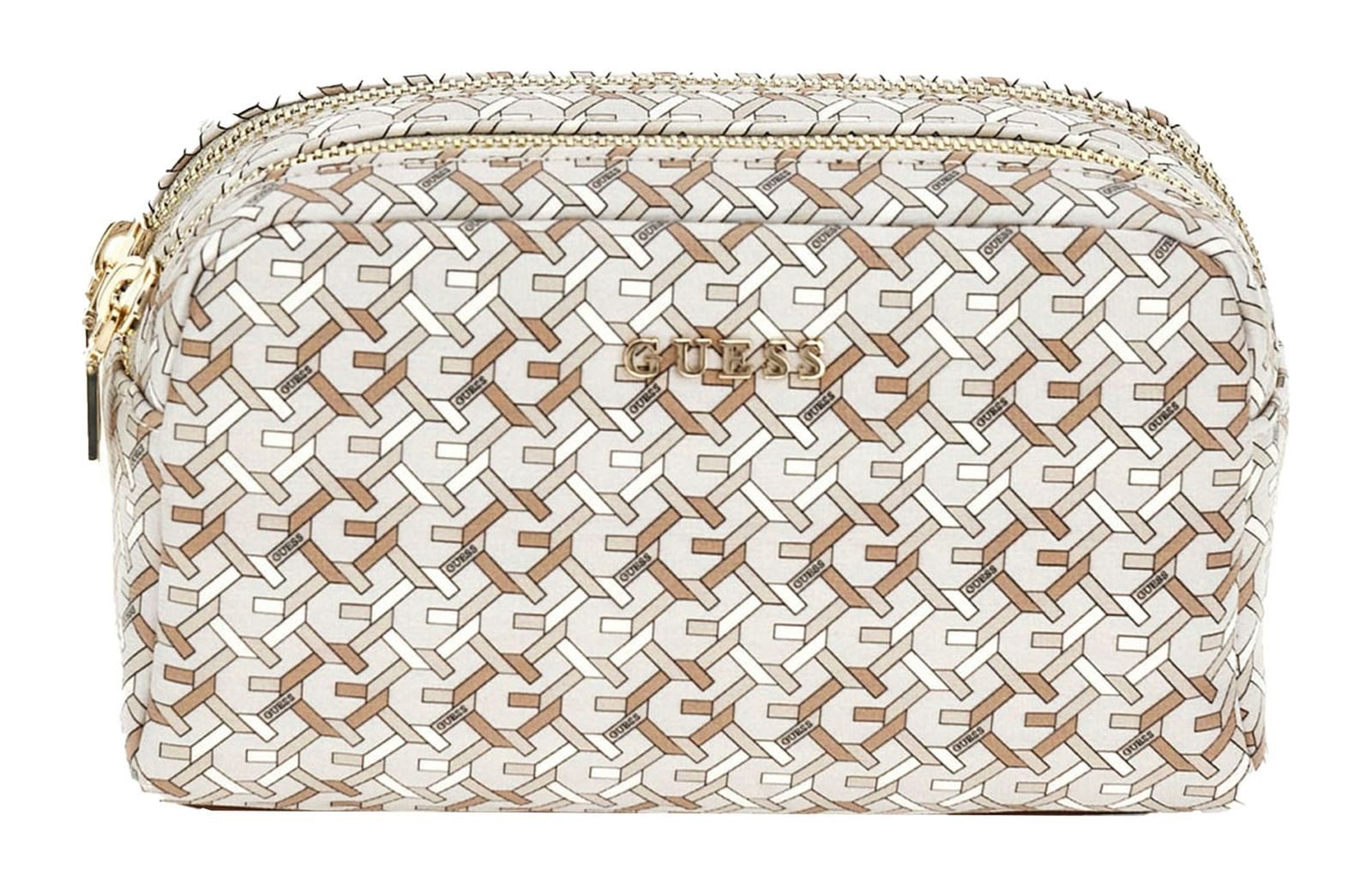 Diese GUESS Utensilientasche schenkt Ihnen viel Platz für Ihre Kosmetikartikel oder sonstige Kleinigkeiten. Die Utensilientasche lässt sich mit der geschickten Размер kinderleicht in Ihrem Koffer oder einer Reisetasche verstauen. Somit kann Ihr Ausflug beginnen. Diese GUESS Double Zip Utensilientasche besticht durch hervorragend verarbeitetes Material und auffallender Optik. Genießen Sie Ihre Reisen mit diesem Herzstück.