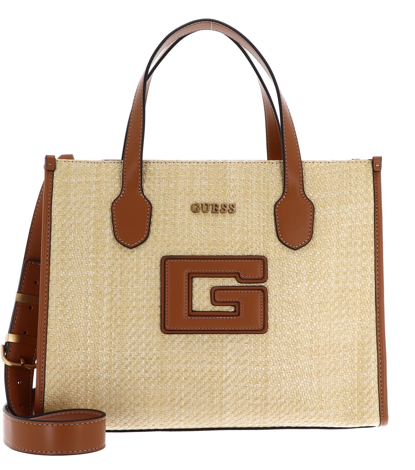 Diese GUESS Handtasche überzeugt auf ganzer Linie! Elegant und modisch zeigt diese Tasche, wie man immer stilvoll unterwegs ist, denn ihre innovative Optik ist einfach immer passend und leicht kombinierbar. Die GUESS G Status 2 Compartment Tote hat zudem ein aufgeteiltes Hauptfach, in das Smartphone, Geldbörse und Hausschlüssel kinderleicht hineinpassen. Bei diesem Schmuckstück hat GUESS Alltagstauglichkeit und Mode optimal kombiniert. Lassen Sie sich diese wunderbare Schultertasche nicht entgehen!