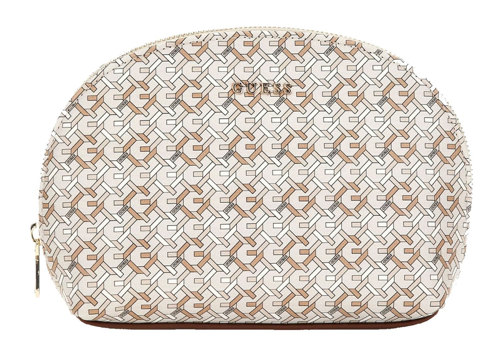 Zu Hause oder auf Reisen - diese Kosmetiktasche wird Sie erfreuen! Als besonders modischer und schöner Begleiter können Sie sich bei der GUESS Kosmetiktasche auf die Kombination von Funktionalität und einem edlen Design freuen. Das Hauptfach bietet genügend Platz, um all Ihre Dinge für unterwegs unterzubringen. Die Kosmetiktasche glänzt mit ihrer tollen Form und dem klassischen GUESS-Design. Lassen Sie sich von dem GUESS Dome Travel Case bei Ihrer nächsten Reise begeistern!