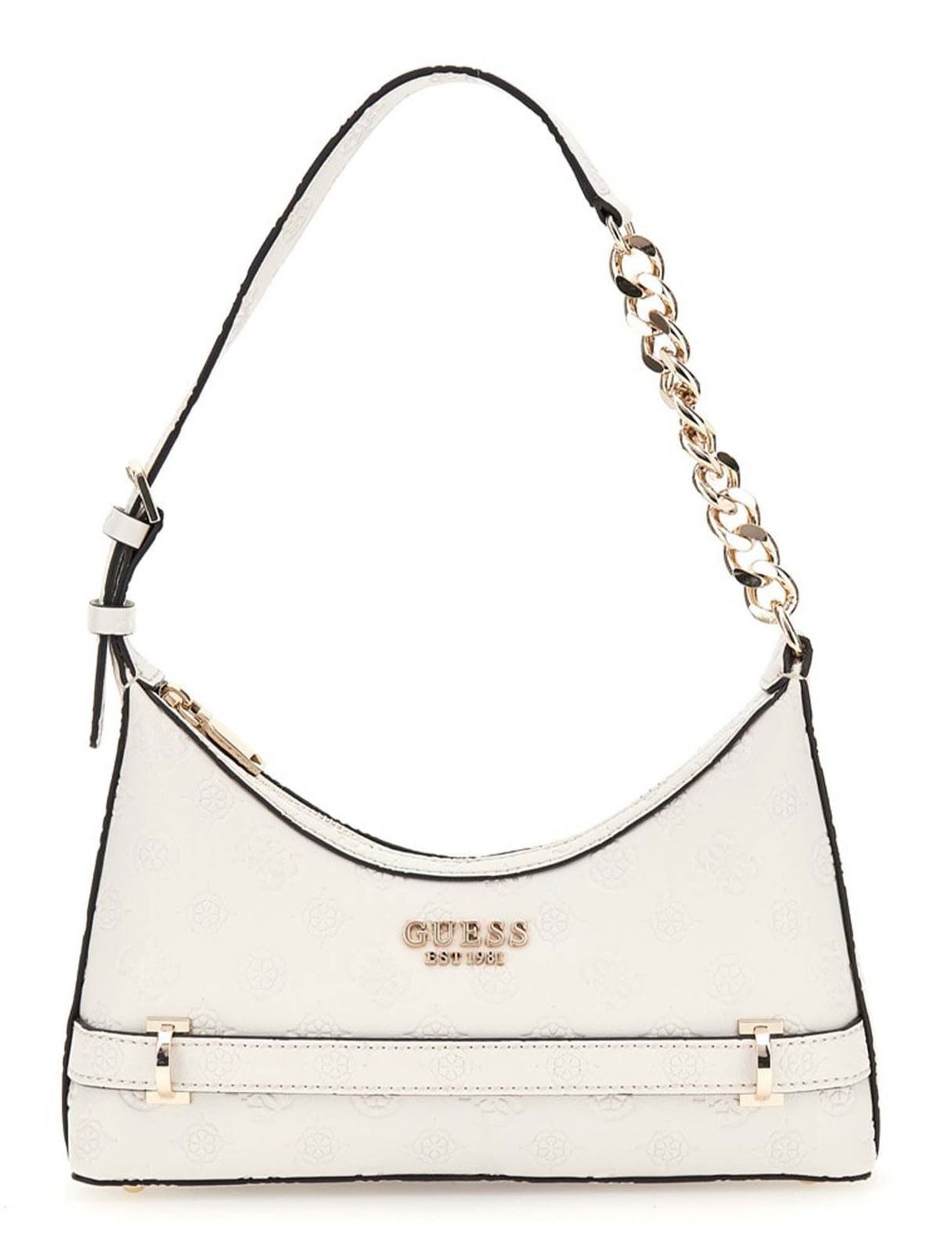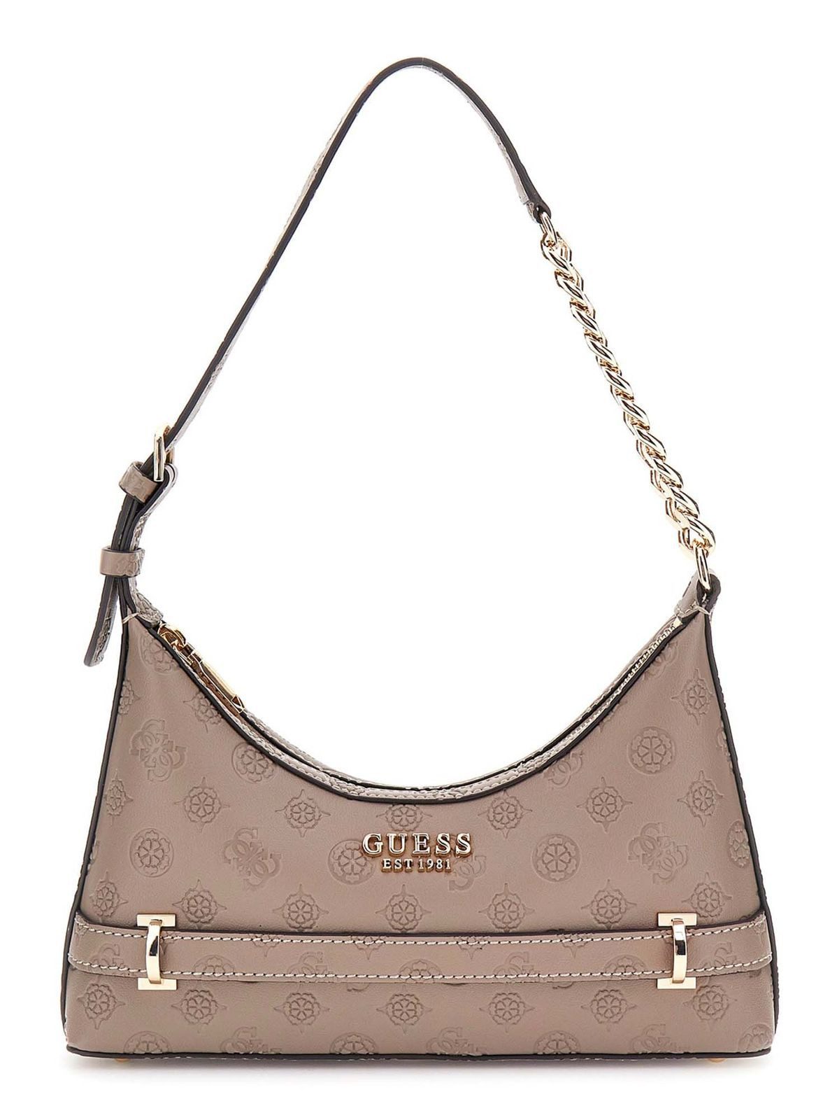 Die modische GUESS Schultertasche setzt mit ihrem cleanen Look und dem aufgesetztem Logo eine elegante Nuance. Schnell ist sie gestylt und man kann loslegen. Das Logomuster schenkt einen einzigartigen Look. Wertsachen können hier prima verstaut werden und mit dem Zipper kommen Sie schnell an alles ran. Dass die Tasche ein leichtes Gewicht hat, macht das Tragen besonders angenehm. Mit dem bequem sitzenden Henkel kann sie lässig getragen werden. Hier ist GUESS wirklich alles gelungen!