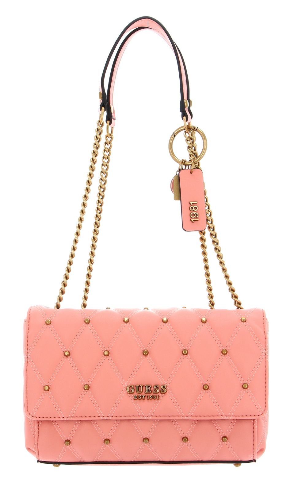 Diese GUESS Tasche in toller Form und einem eleganten Design ist ein echter Hingucker, durch die gesteppte, Nieten besetzte Oberfläche hat sie einfach das gewisse Etwas! Sie können frei entscheiden, ob Sie die Tasche lieber über die Schulter als oder Crossover als Umhängetasche tragen möchten. So sind Sie flexibel, beim Stadtbummel mit den Freundinnen oder Abends bei einem Event, Sie werden wunderschöne Eindrücke hinterlassen. Die GUESS Triana Convertible Xbody Flap wird Ihr neues Schmuckstück.
