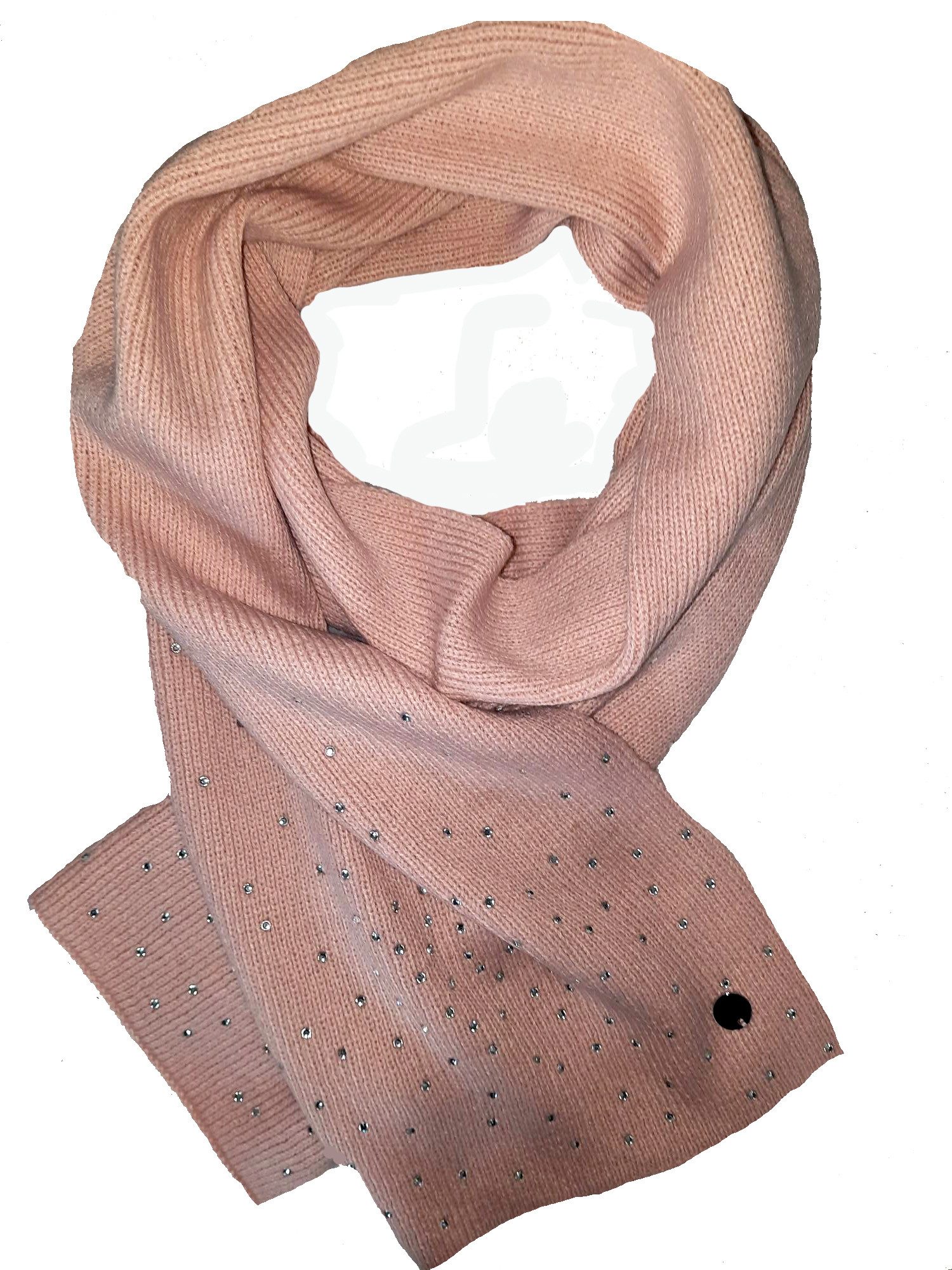 Der flauschige Schal ist mit kleinen Straßsteinchen versetzt und at am Ende ein aufgenähtes Guess Logo