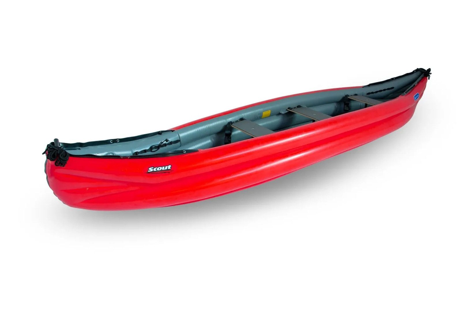 Seine Hauptvorteile sind die Komfort-Ausstattung, ein riesengroßer Innenraum, eine hohe Tragfähigkeit, ausgewogene Fahreigenschaften und eine ausgezeichnete Geschwindigkeit sowohl auf ruhigem Wasser als auch auf Wildwasser (bis WW3). Das alles werden sowohl die Abenteurer bei langen Fahrten mit großem Gepäck als auch die Adrenalin-Jäger in den Schnellen und Familien mit Kindern bei behaglichen Spazierfahrten schätzen. Das Kanu Scout bringt ein einzigartiges und innovatives System von T-Bones-Streben, das eine ausgezeichnete Raumfestigkeit des Bootes sicherstellt und die Fahreigenschaften des Bootes vergleichbar mit einem festen Boot macht. Einstellbare Steifheit des ganzen Systems kann zusätzlich den Anforderungen der Paddler angepasst werden.