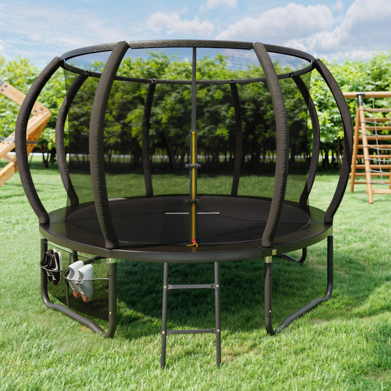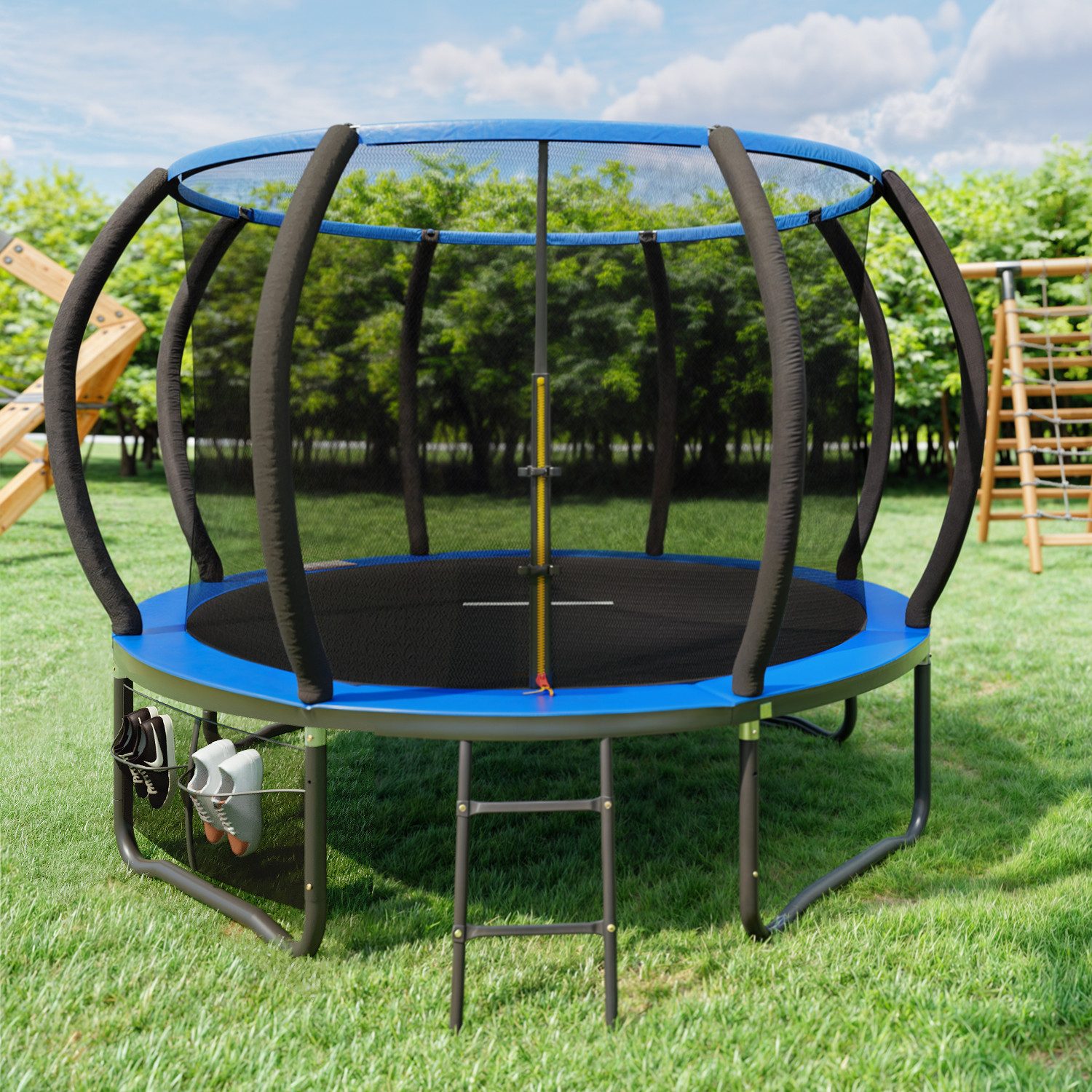 Produktspezifikationen: 305 × 305 × 256cm (L × B × H), Rahmendurchmesser 305cm (10 FT), im Vergleich zur vorherigen Produktgeneration (228cm Rahmen) wurde das Volumen um ca. 35% erhöht, besser geeignet für den Einsatz von mehreren Personen oder für professionelle Sprunganforderungen.
