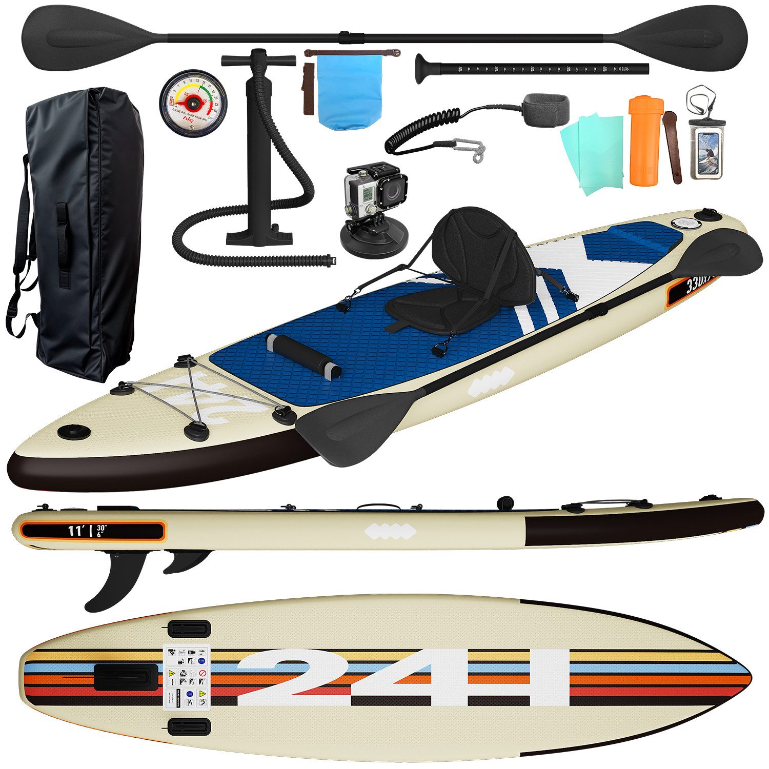 Paddel: Schwarzes, doppelendiges, dreiteiliges Paddel aus Aluminiumlegierung, verstellbar in der Длина von 165-210 cm, um den Bedürfnissen der verschiedenen Benutzer gerecht zu werden.