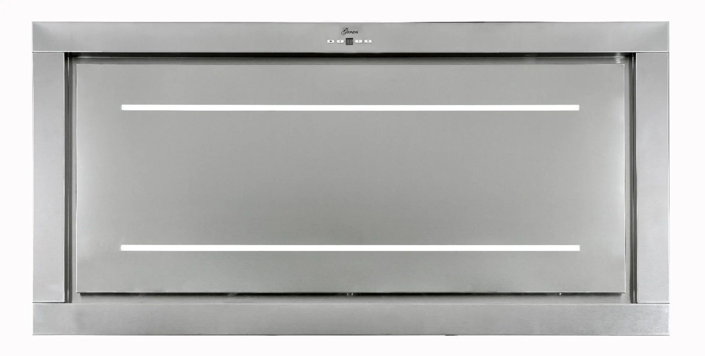 Exklusive Deckenhaube aus hochwertigem Edelstahl.