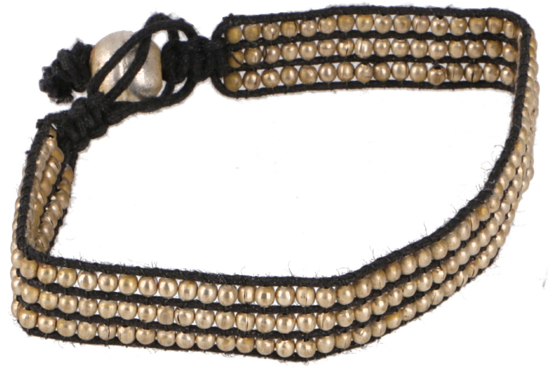 Hübsches, geflochtenes Makrameearmband mit kleinen goldenen Perlen im Ethno-Style aus Thailand. Ein super Accessoires für den perfekten Boho-Sommerlook.