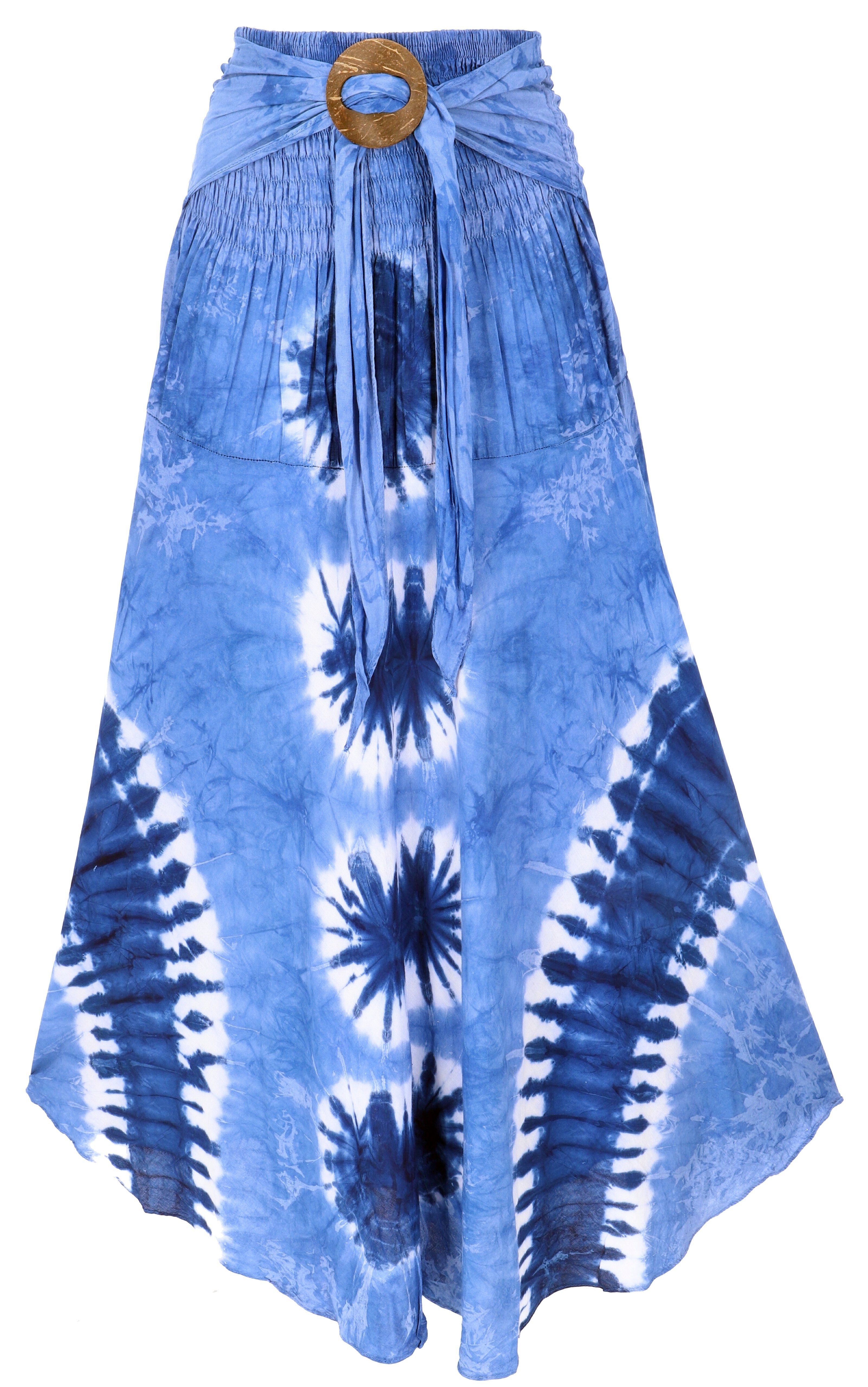 Unser leichter, weit schwingender Rock mit einer schönen Schnalle aus Kokosnuss ist ein absoluter Hingucker für den Sommer. Die Kokosschnalle kann nicht nur als dekoratives Element dienen, sondern auch als praktische Befestigung für Tücher und Sarongs genutzt werden. Der Rock ist im Rückenbereich elastisch und sorgt somit für einen perfekten Sitz und höchsten Tragekomfort. Der breite, gesmokte Bund kann zudem als Top über die Brust gezogen werden und verwandelt den Rock im Handumdrehen in ein luftiges Kleidchen. Jeder Rock ist ein Unikat, wodurch die Anordnung des Musters leicht von der Abbildung abweichen kann. Mit diesem vielseitigen und einzigartigen Rock seid Ihr perfekt für den Sommer gerüstet.