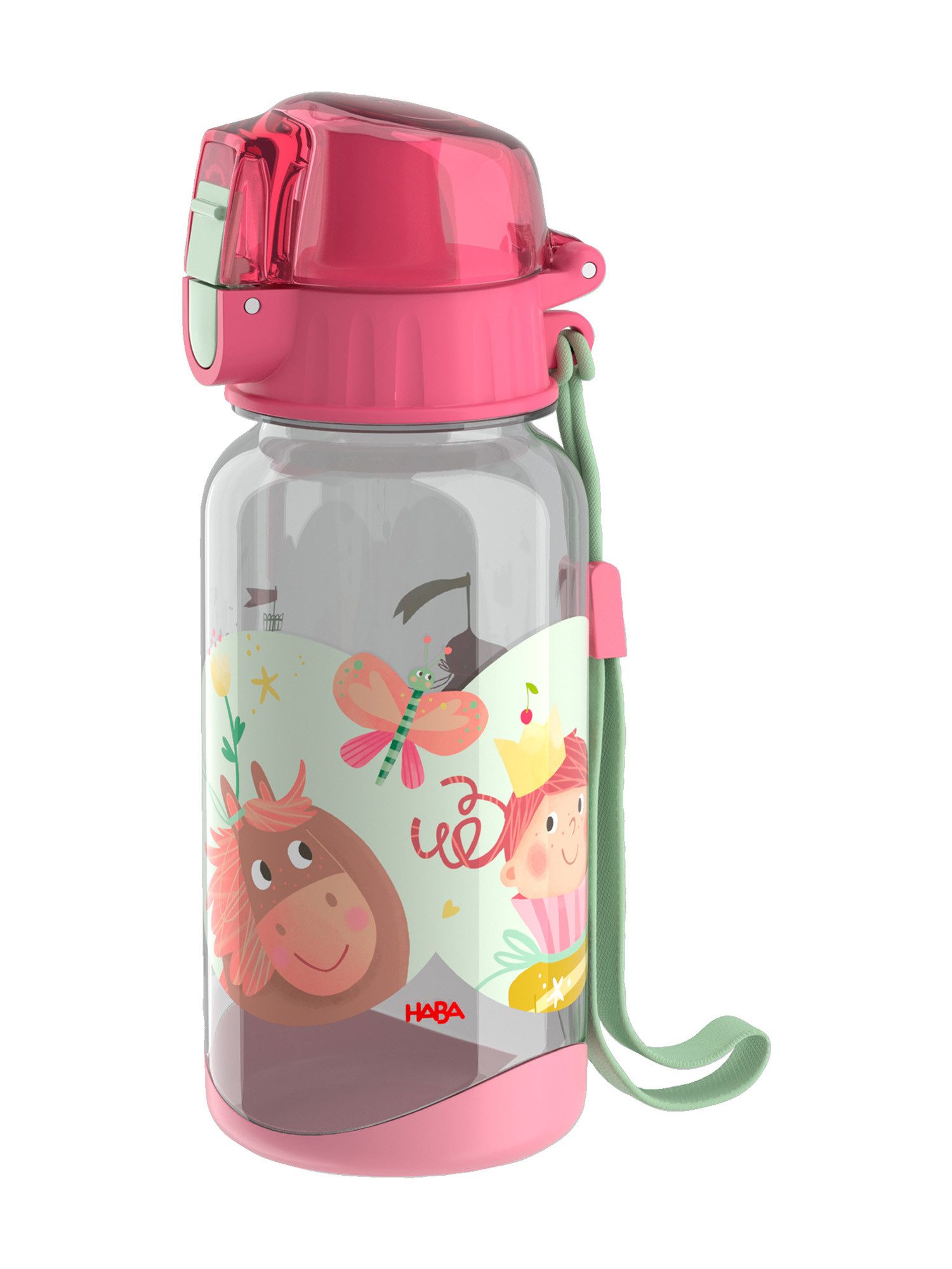 Diese HABA Trinkflasche in liebevollem Design regt Kinder immer wieder zum Trinken an. Dank der großen Öffnung lässt sie sich leicht befüllen sowie reinigen. Die praktische Verschlusskappe können Kinder ganz einfach bedienen. Mit der abnehmbaren Transportschlaufe lässt sich die Flasche an den Schulranzen, den Rucksack oder die Sporttasche befestigen. Hier im super Doppelpack mit der HABA Brotdose! Diese hat zwei praktische Fächer und einen sicheren Klickverschluss.