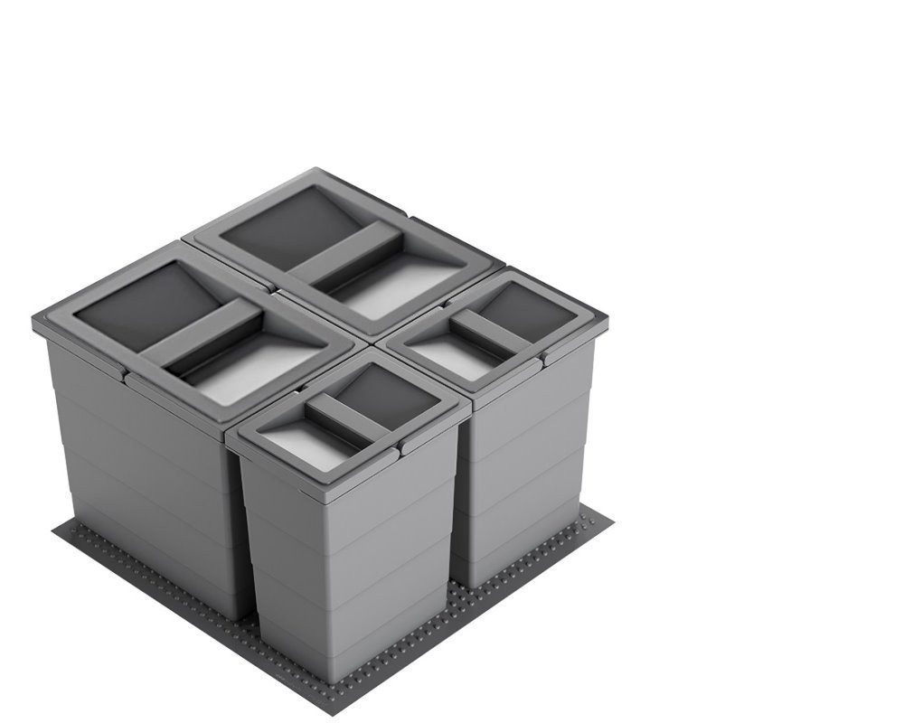 Das Hailo Всеgro System bietet Flexibilität für die speziell auf Ihre Bedürfnisse zugeschnittene Abfalltrennung in der Küche. Das Abfalltrennsystem passt, ohne aufwenige Montage, in jede bauseits vorhandene 60 cm breite Schublade. Neben dem individuellen Zuschnitt der Antirutschmatte ermöglicht das breite Меню an Mülleimer mit Biodeckel den Einsatz verschiedenen Kombinationen und Höhenmaße. Der Planung sind hierbei keine Grenzen gesetzt. Diese Vielseitigkeit ermöglicht es, den verfügbaren Platz in Ihrem Küchenschrank optimal zu nutzen und gleichzeitig die Mülltrennung effizient und nachhaltig zu gestalten. Das hier angebotene Mülltrennsystem beinhaltet 4 Mülleimer mit einem Gesamtvolumen von 52 Liter zuzüglich 4 Biodeckel. Für den gesamten Mülleimereinsatz benötigen Sie einen vorhandenen Schrankauszug in ihrem 60er Küchenschrank, welcher einen Freiraum von 295 mm in der Höhe und 464 mm in der Tiefe bieten muss.