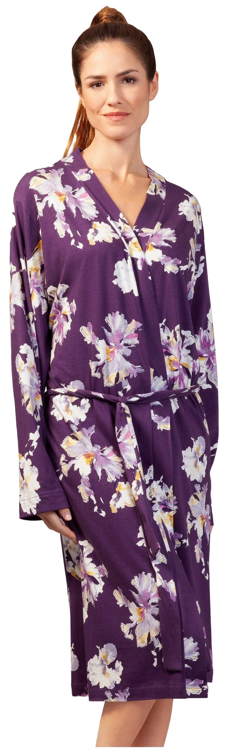 Dieser Hajo Damen Kimono vereint stilvolles Design mit luxuriösem Komfort und ist die perfekte Wahl für eine elegante Freizeitgestaltung. Er besteht aus einer hochwertigen Mischung von 50% Baumwolle und 50% Modal, was für ein angenehmes Tragegefühl sorgt. Die Baumwolle bietet Atmungsaktivität und Weichheit, während Modal eine seidige Glätte und hervorragende Feuchtigkeitsregulierung bietet, was den Kimono besonders komfortabel und pflegeleicht macht. Mit einer Длина von 110 cm umhüllt der Kimono sanft und großzügig, ideal für eine entspannte Silhouette. Der extravagante Blumenprint verleiht dem Kimono eine lebendige und moderne Ausstrahlung, die jedem Outfit einen Hauch von Luxus und Stil verleiht. Der Blumenprint ist auffällig und dennoch geschmackvoll, perfekt für einen edlen Look zu Hause oder für besondere Anlässe. Der Kimono ist nicht nur ein Kleidungsstück, sondern ein Statement für zeitlose Eleganz und hohen Komfort.
