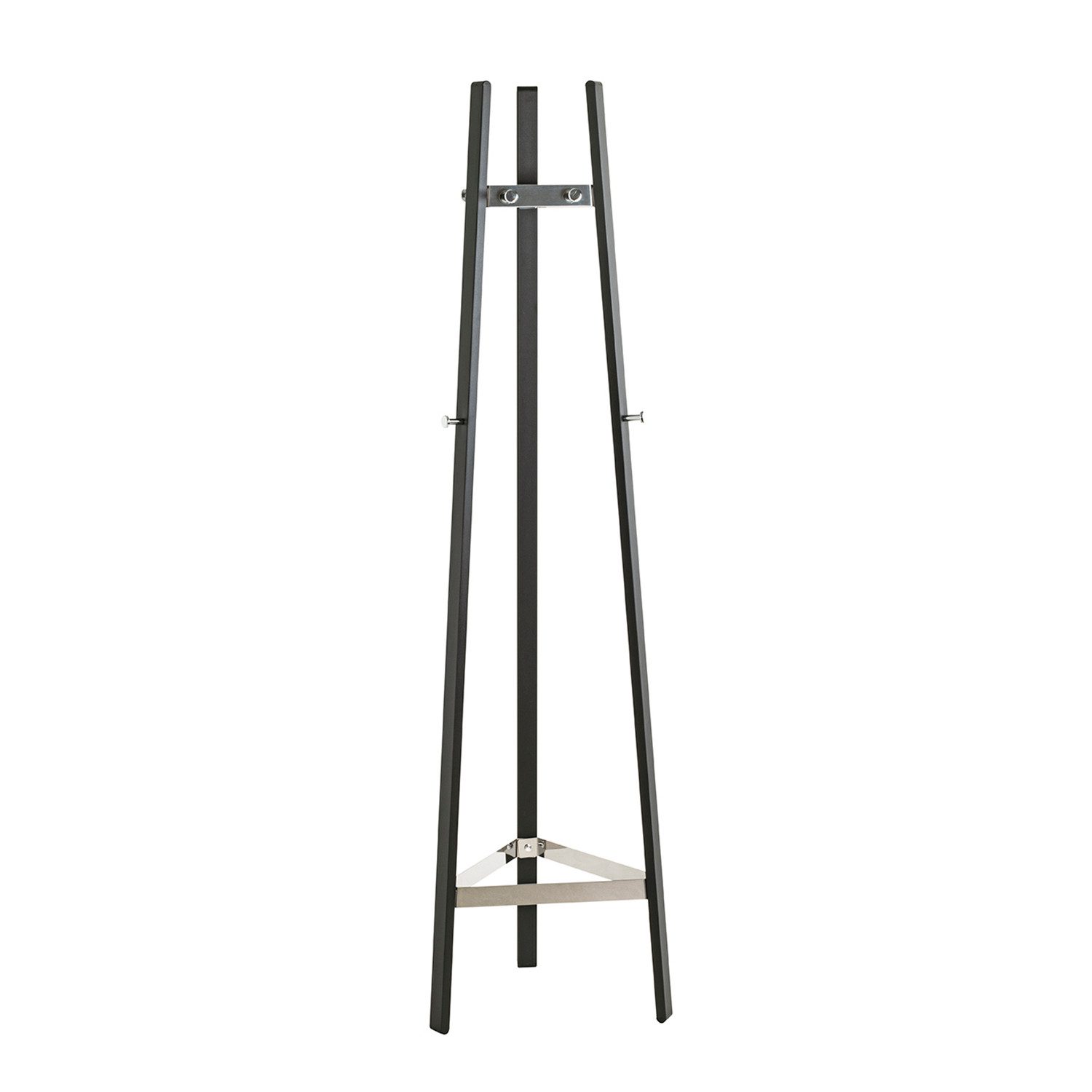 Der Garderobenständer Paul von HAKU Möbel besticht durch sein elegantes Design aus schwarzem, pulverbeschichtetem Stahlrohr und chromfarbenen Metallelementen.