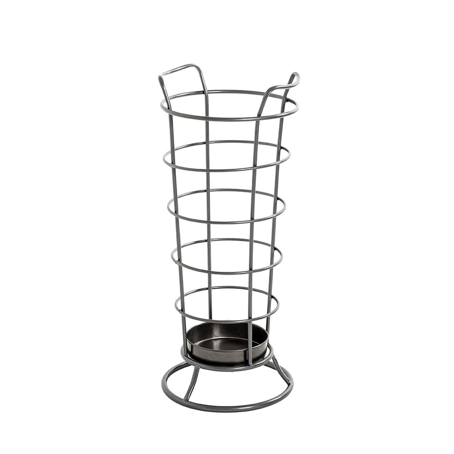 Das Gestell des Schirmständers ist aus robustem Metall gefertigt und anthrazitfarben lackiert, was ihm eine moderne und stilvolle Optik verleiht.