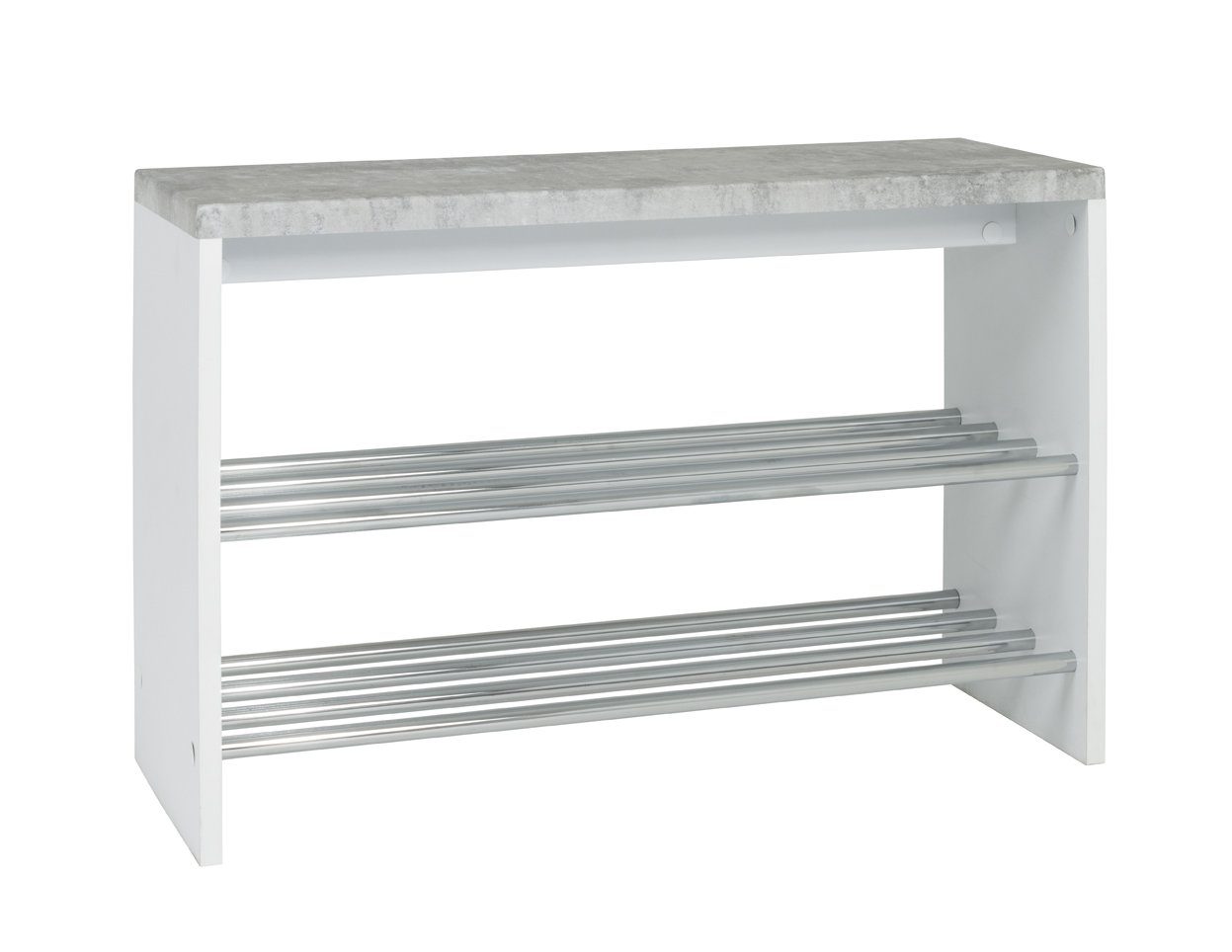 Bank aus MDF Dekor weiß, Ablage MDF Dekor Betonoptik, Schuhablage in chrom