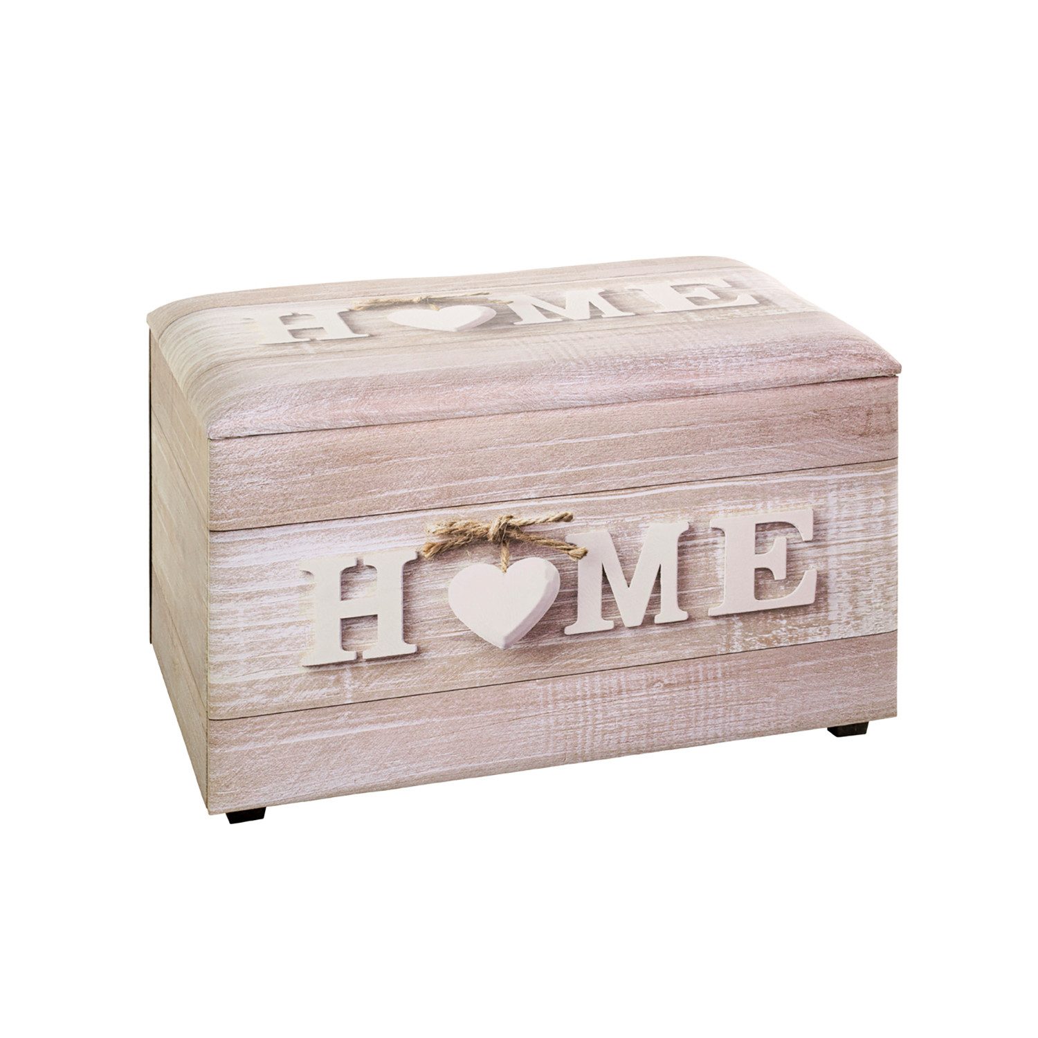 Die HAKU Möbel Sitztruhe Home 90 vereint Funktionalität und Stil in einem einzigartigen Möbelstück. Diese Sitztruhe aus der Produktkategorie Sitztruhe besticht durch ihr ansprechendes Design mit einem Kunstleder Motivdruck "Home", das auf robustem MDF-Material aufgebracht ist. Die gepolsterte Sitzfläche ist abnehmbar und bietet zusätzlichen Komfort. Der Bezug besteht aus 80% PVC und 20% PU, was ihn nicht brennbar macht und für Langlebigkeit sorgt. Die Füße aus Hartgummi verleihen der Truhe Stabilität, während der Schaumstoff aus 100% PU für eine angenehme Polsterung sorgt. Innen ist der Bezug aus 100% Polyester gefertigt. Mit einer Höhe von 42 cm, einer Breite von 65 cm und einer Tiefe von 40 cm bietet die Truhe ausreichend Stauraum mit einem Innenmaß von B62-T37,5-H34 cm und einem Volumen von 0,01791 m³. Trotz ihres geringen Gewichts von 8,55 kg ist die Sitztruhe mit bis zu 85 kg belastbar. Die HAKU Möbel Sitztruhe Home 90 ist die perfekte Ergänzung für jedes Zuhause, das Wert auf stilvolle und praktische Einrichtung legt.