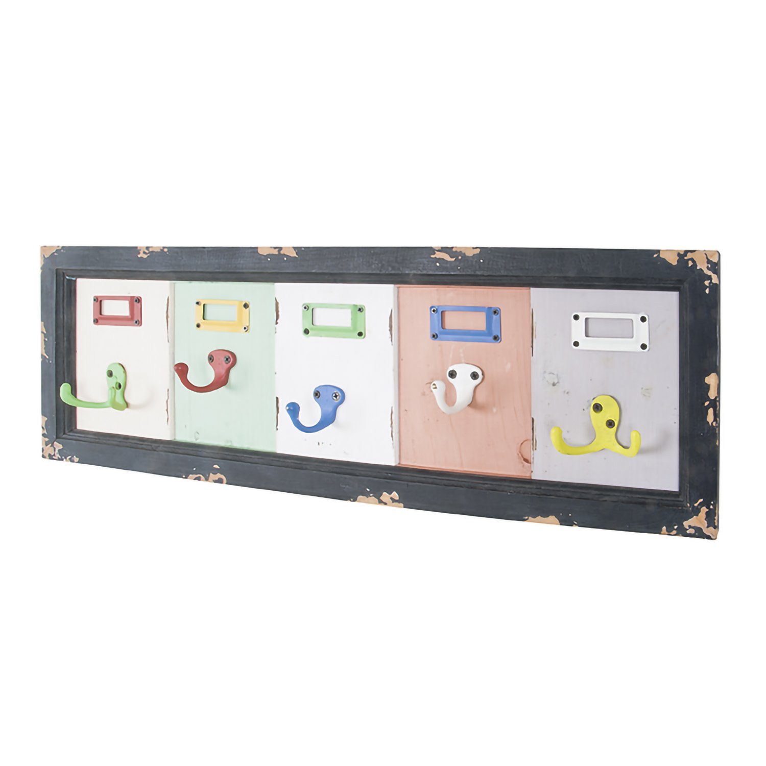 Wandgarderobe aus Massivholz in Vintageoptik in verschiedenen Farben, mit 5 Metallhaken