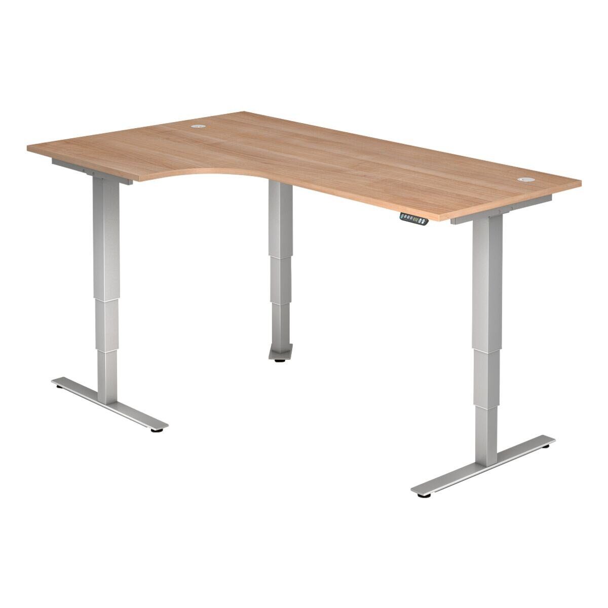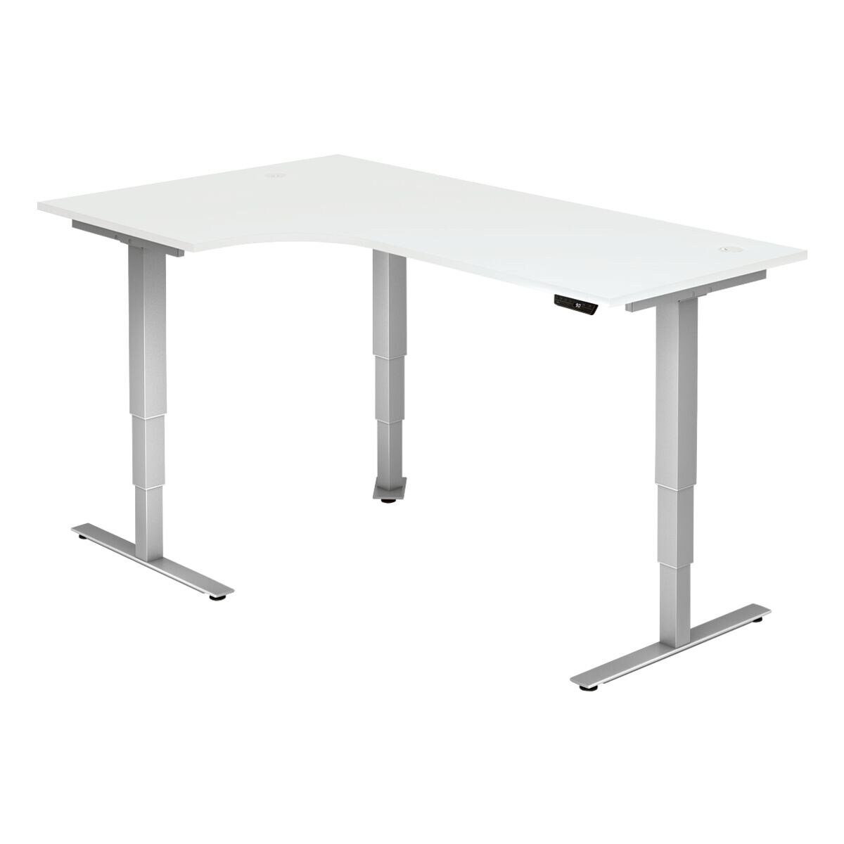 Winkelschreibtisch »Ergonomic« 200 cm breit und elektrisch höhenverstellbar bis 128,5 cm, Ausführung: silberfarbenes T-Fuß Gestell (3-stufiges Quadratrohr aus Stahl), Platte melaminharzbeschichtet, Plattenstärke: 25 mm, mit 2 mm ABS-Kanten, elektrisch und traversenlos höhenverstellbar von 63,5 cm bis 128,5 cm, mit 2 integrierten Motoren, horizontale Kabelwanne