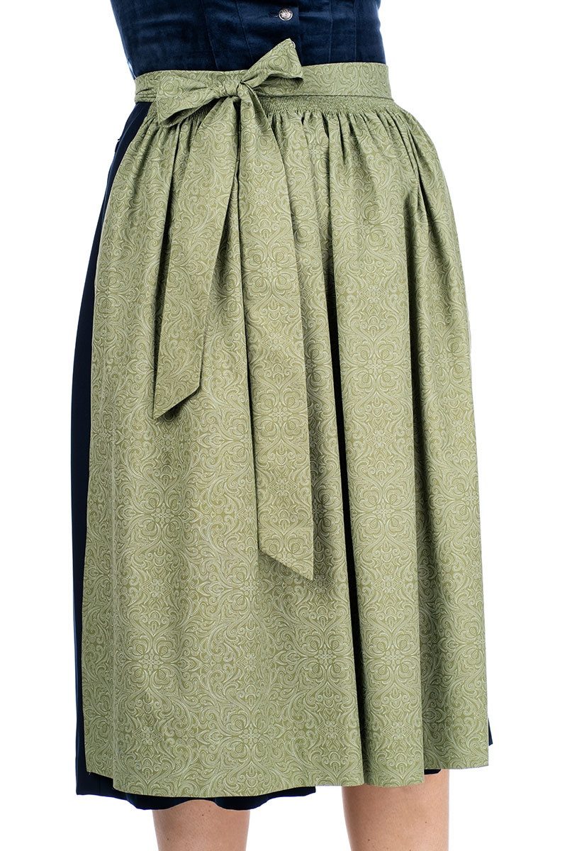 Edles Design: Wadenlange Dirndlschürze aus reiner Baumwolle mit zartem Ornamentik-Print