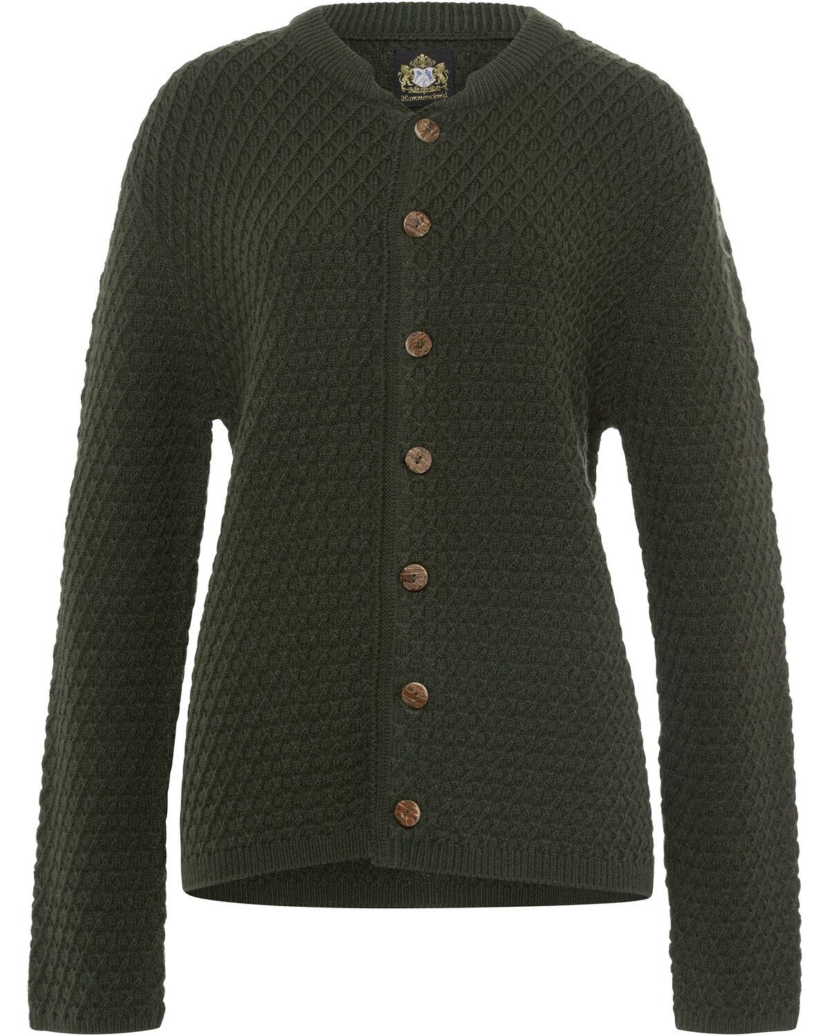 Die Herren Trachten Strickjacke Anton von Hammerschmid vereint Tradition mit modernem Design. Das rautenförmige Strickmuster verleiht der Jacke einen charakteristischen Look, der sich ideal für festliche Anlässe oder gemütliche Abende in der Natur eignet. Die gerade geschnittene Form sorgt für eine bequeme Passform, die sowohl Bewegungsfreiheit als auch stilvolle Eleganz bietet. Die Knopfleiste ermöglicht ein einfaches An- und Ausziehen, während der gerippte Stehkragen zusätzlichen Schutz vor Kälte bietet. Diese Details unterstreichen nicht nur die Funktionalität, sondern auch die stilvolle Ausstrahlung der Strickjacke. Ob in Kombination mit einer traditionellen Lederhose oder lässig zu Jeans, die Trachten Strickjacke Anton ist vielseitig einsetzbar und verleiht jedem Outfit eine besondere Note. Mit dieser Jacke wird der eigene Stil auf charmante Weise zum Ausdruck gebracht, während die Wurzeln der Trachtenmode gewahrt bleiben. Ein Must-Have für jeden modebewussten Herren, der Wert auf Tradition legt. Oberstoff: 70% Polyacryl, 30% Wolle