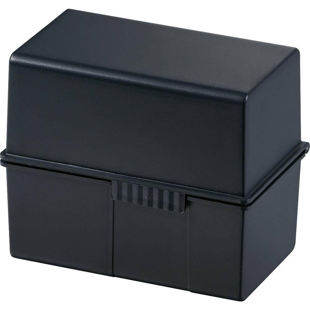 HAN 977-13 Karteibox Schwarz max. Anzahl der Karten: 300 Karten DIN A7 quer Stahlscharnier, Deckel als zusätzlicher Tro.