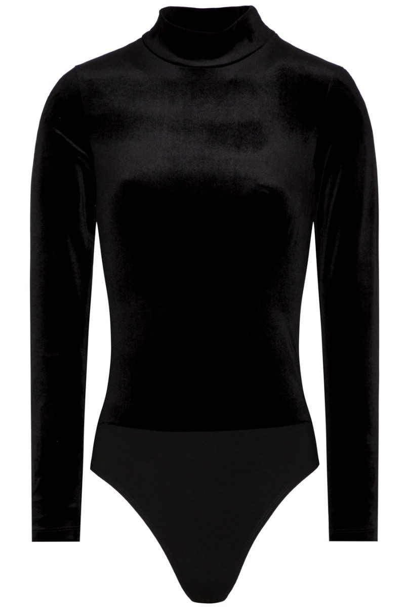 Der elegante Blusenbody "Donata" besteht aus weichem, schimmerndem Samt, ist querelastisch und hat lange Ärmel. Der stilvolle Rundhals-Stehkragen ist doppellagig und elastisch gearbeitet. Auf der Rückseite unter dem Kragen befindet sich eine hübsche Applikation im Loden-Look in Wappenform. Diese Applikation ist mit funkelnden Strasssteinen in Blütenform besetzt. Das Höschenteil in Jersey-Qualität verfügt über einen Druckknopfverschluss im Schritt. Dieser Blusenbody lässt sich traumhaft kombinieren.