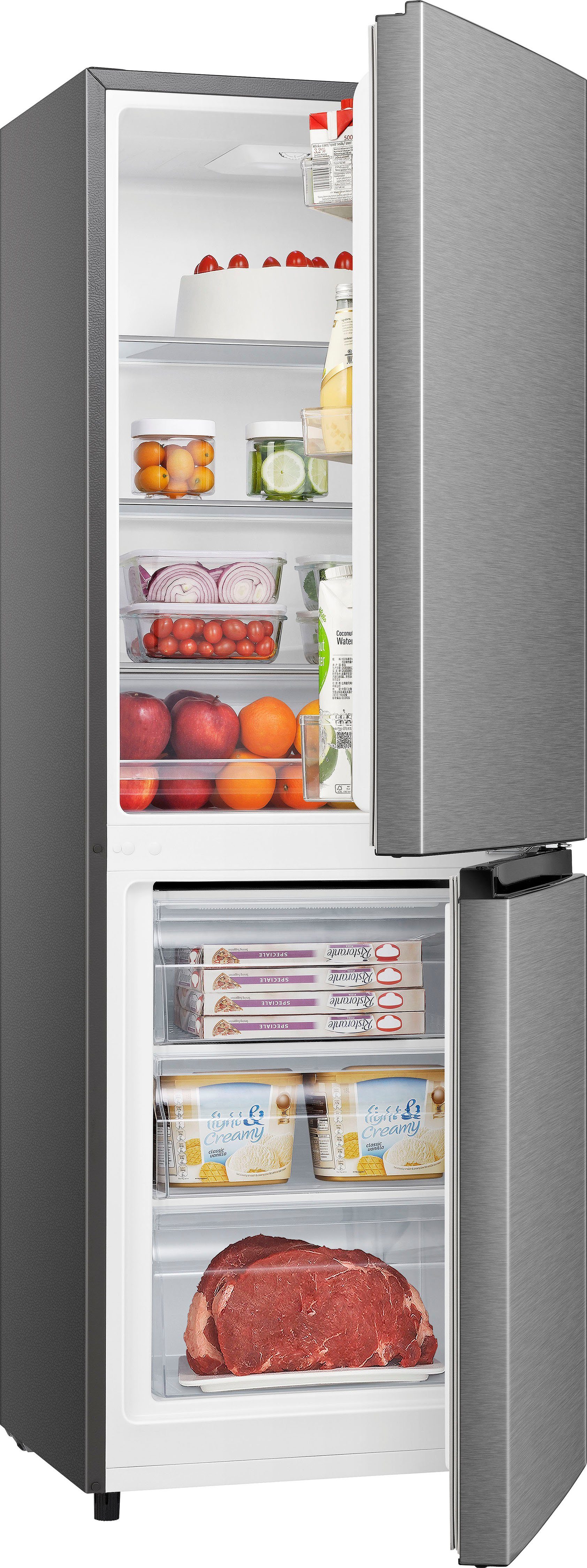 Die Kühl- und Gefrierkombination »HKGK16155CI« von Hanseatic hat eine hohe Funktionalität sowie die Energieeffizienzklasse C (Skala Energieeffizienzklasse A bis G) und ist freistehend. Bei einem Gefriervolumen von 71 l und Kühlvolumen von 159 l betragen die Maße des Modells 55 x 161 x 55,8 cm (B/H/T). Das Betriebsgeräusch des Modells liegt bei 36 dB. Drei Gefrierschubladen und eine Gemüseschublade stehen zur Verfügung, um den Einkauf zu verstauen. Die Kühl- und Gefrierkombination hat drei Ablageflächen aus Glas, darunter zwei höhenverstellbar, die viel Platz für Lebensmittel bieten. Zusätzliche Flexibilität bei der Lagerung bieten die drei Türablagen. Perfekte Übersichtlichkeit erhält man außerdem dank der LED-Innenbeleuchtung. Wer auf der Suche ist nach einem Gerät, das genug Platz für Nahrungsmittel bietet, der trifft mit der »HKGK16155CI« von Hanseatic eine gute Wahl.