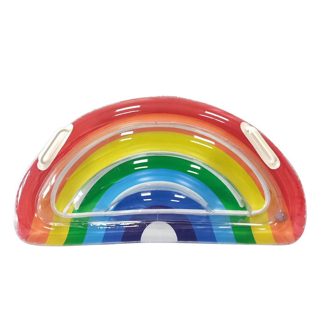 Mit dieser Badematratze in Regenbogenfarben wird jeder Badeausflug zu einem farbenfrohen Erlebnis. Genießen Sie entspannte Stunden im Wasser auf diesem komfortablen und stylischen Accessoire.