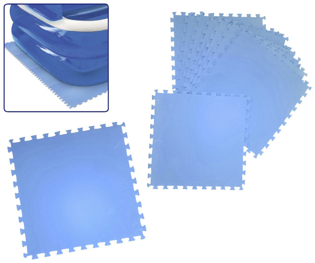 Produktdetails: Maße: 50 x 50 x 0,4 cm | Fläche: 2,0 m² | Farbe: blau | Material: EVA | 8 Stück | Zum Schutz des Poolbodens und des Rasens | Passend für alle Poolgrößen durch beliebig erweiterbares Stecksystem | Geeignet für alle gängigen Aufstellpools | Lieferumfang: 8er Set Bodenschutzmatte |