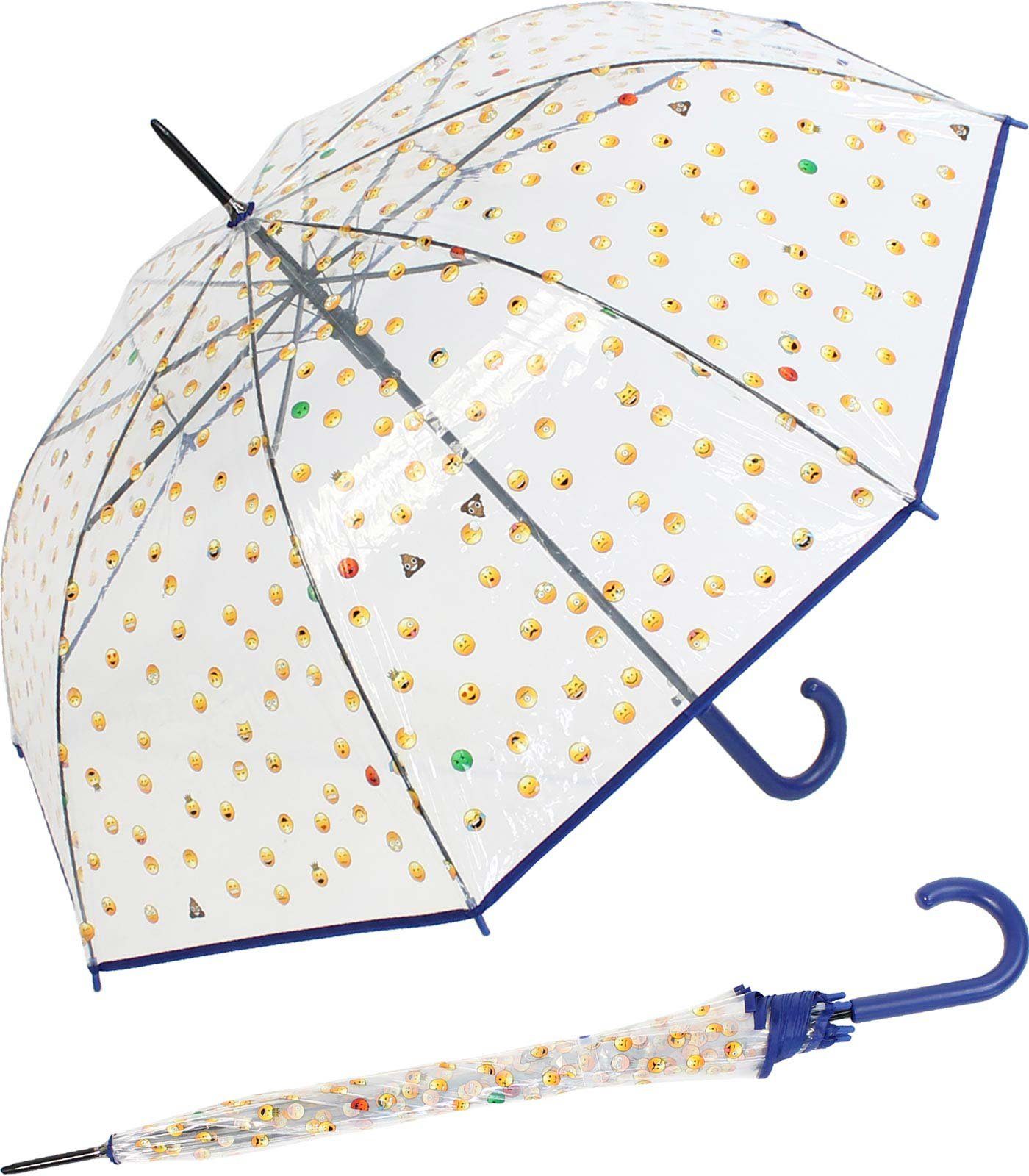 Mit diesem Schirm erregt man in jedem Fall Aufmerksamkeit. Die kleinen unabkömmlichen Emoticon verlassen die digitale Welt und treten nun gegen Regen und trübes Wetter an. Und Sie haben sie auf dem Schirm. Trotz der lustigen Emoticon behalten Sie Dank der qualitativ hochwertigen PE-Folie, immer den Durchblick.