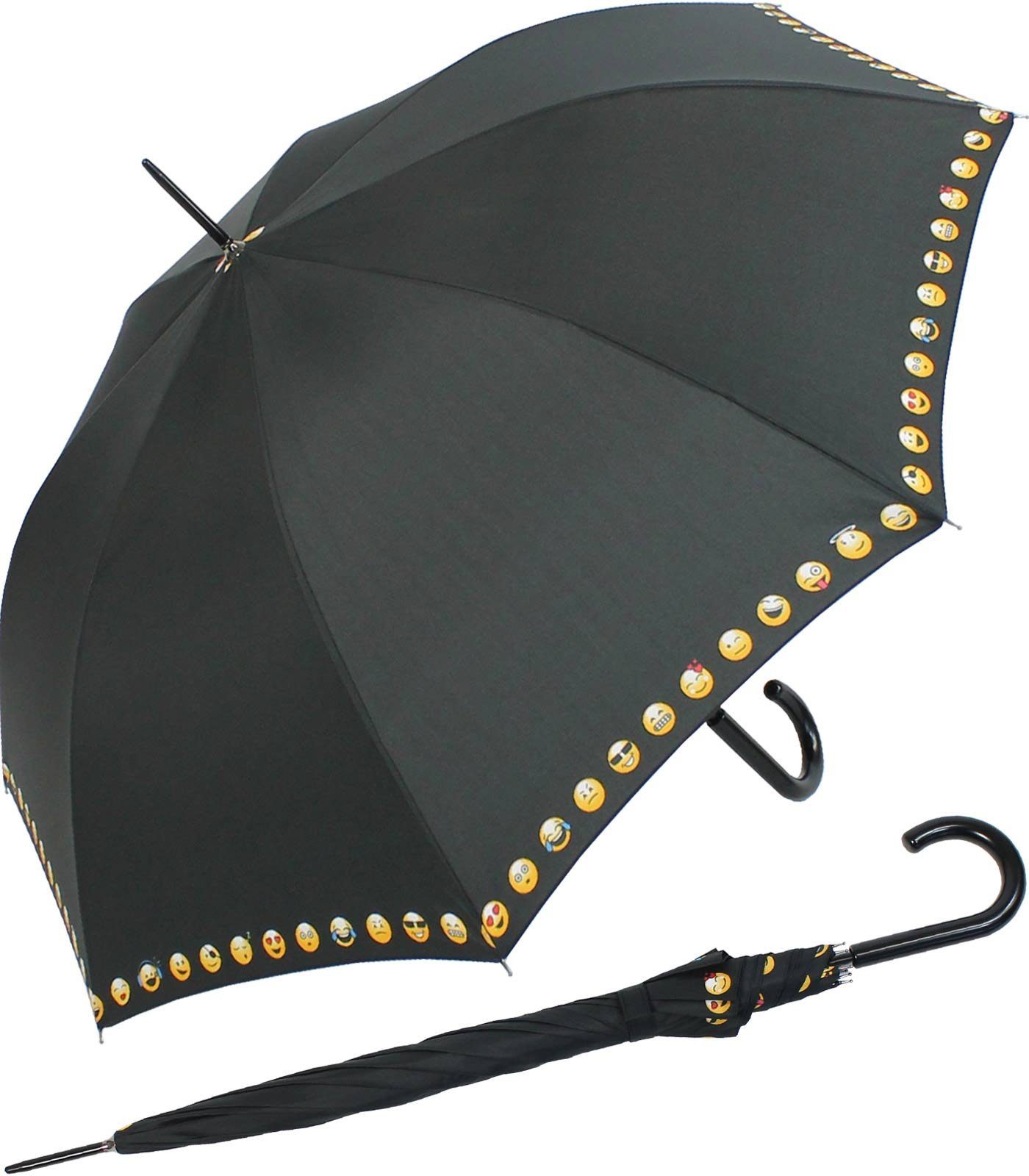 Mit diesem Schirm erregt man in jedem Fall Aufmerksamkeit. Die kleinen unabkömmlichen Emoticon verlassen die digitale Welt und treten nun gegen Regen und trübes Wetter an. Und Sie haben sie auf dem Schirm.