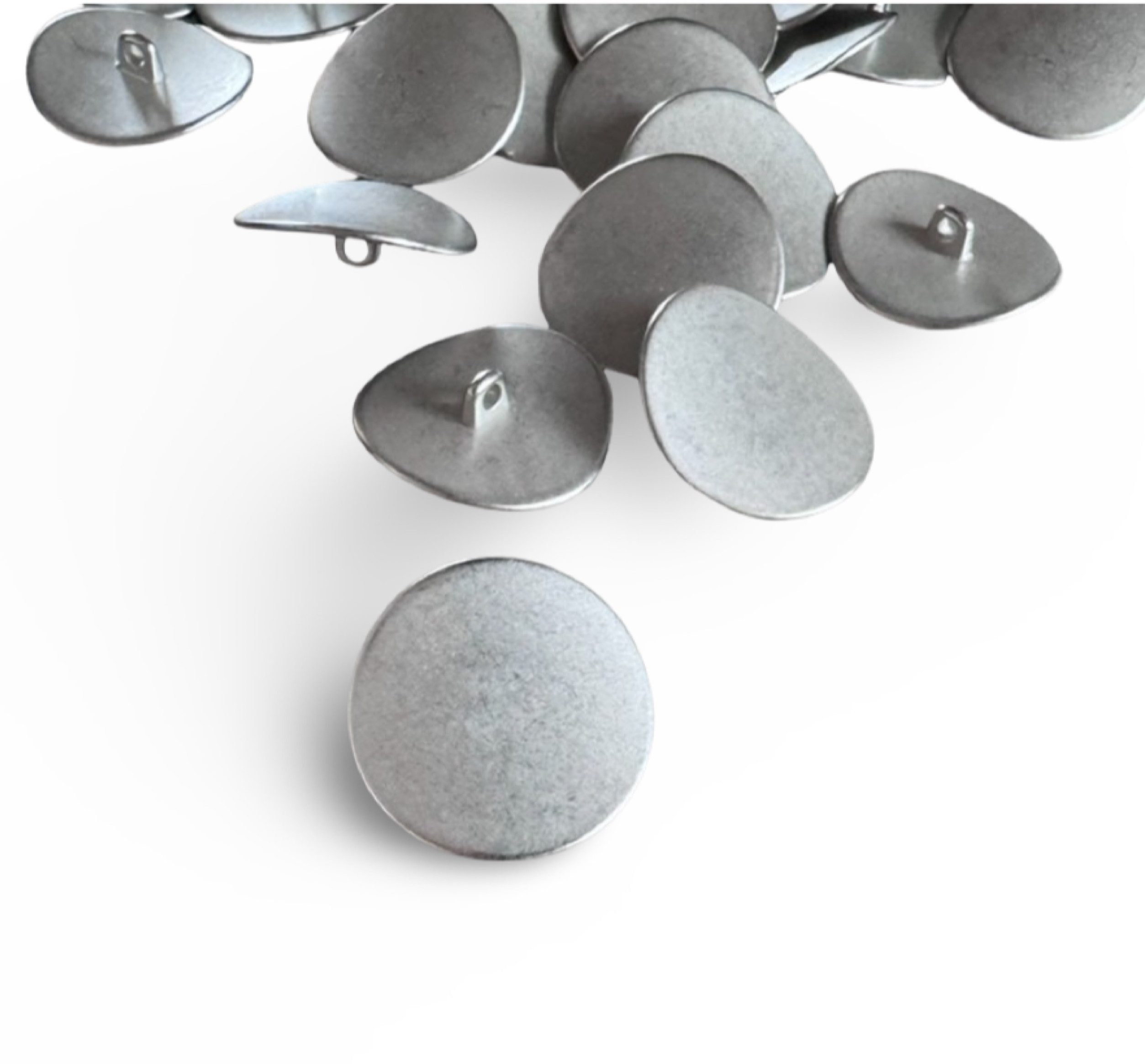 Silberfarbene, matte Ösenknöpfe zum Annähen in zwei praktischen Größen: 18mm für Ärmel oder Westen und 23mm für Blazer, Sakkos vorn. Mit ihrer modernen, glatten Form verleihen sie deinem Outfit eine elegante Note. Die stabilen Metallknöpfe sind robust und sorgen für einen sicheren Halt, ideal für die individuelle Gestaltung von Kleidungsstücken