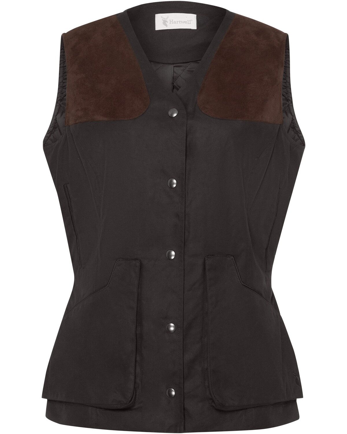 Die Damen Wachsweste Katrina von Hartwell vereint Funktionalität mit einem klassischen British Style und ist aus hochwertigem gewachstem Baumwollgewebe gefertigt. Diese wasserabweisende Weste bietet Schutz vor leichten Regenschauern und ist ideal für Outdoor-Aktivitäten. Ihr taillierter Schnitt betont die feminine Silhouette und sorgt für eine elegante Ästhetik, während die zwei Blasebalg-Fronttaschen praktischen Stauraum für kleine Utensilien bieten. Die Druckknopf-Frontleiste und der kragenlose V-Ausschnitt verleihen der Weste einen modernen Touch. Ein besonderes Designmerkmal sind die Kunst-Wildlederbesätze an den Schultern, die nicht nur stilvolle Akzente setzen, sondern auch zusätzliche Strapazierfähigkeit bieten. Seitliche Riegel mit Druckknöpfen ermöglichen die individuelle Anpassung der Taillenweite, was für optimalen Tragekomfort sorgt. Die Wachsweste Katrina ist eine stilvolle und praktische Wahl für modebewusste Frauen, die Wert auf Qualität und Design legen. Pflegehinweis: Um die Qualität der Wachsbeschichtung zu erhalten, sollte die Weste nur mit kaltem Wasser und einem weichen Schwamm gereinigt werden. Das Waschen in der Maschine oder die Verwendung von heißen Wasser und Seifen sollte vermieden werden, da dies die Wachsbeschichtung dauerhaft entfernen kann. Oberstoff: 100% Baumwolle